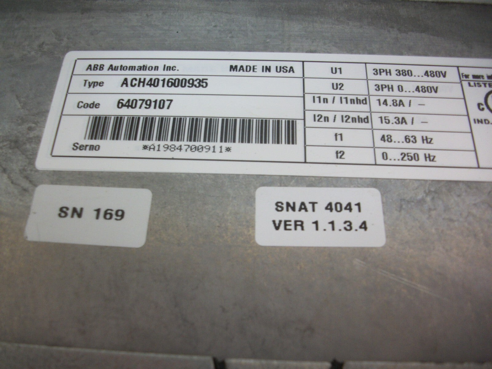 ABB AC DRIVE ACH401600935 480VOLT 3PH 15.3AMP W/DISCONNECT BOX