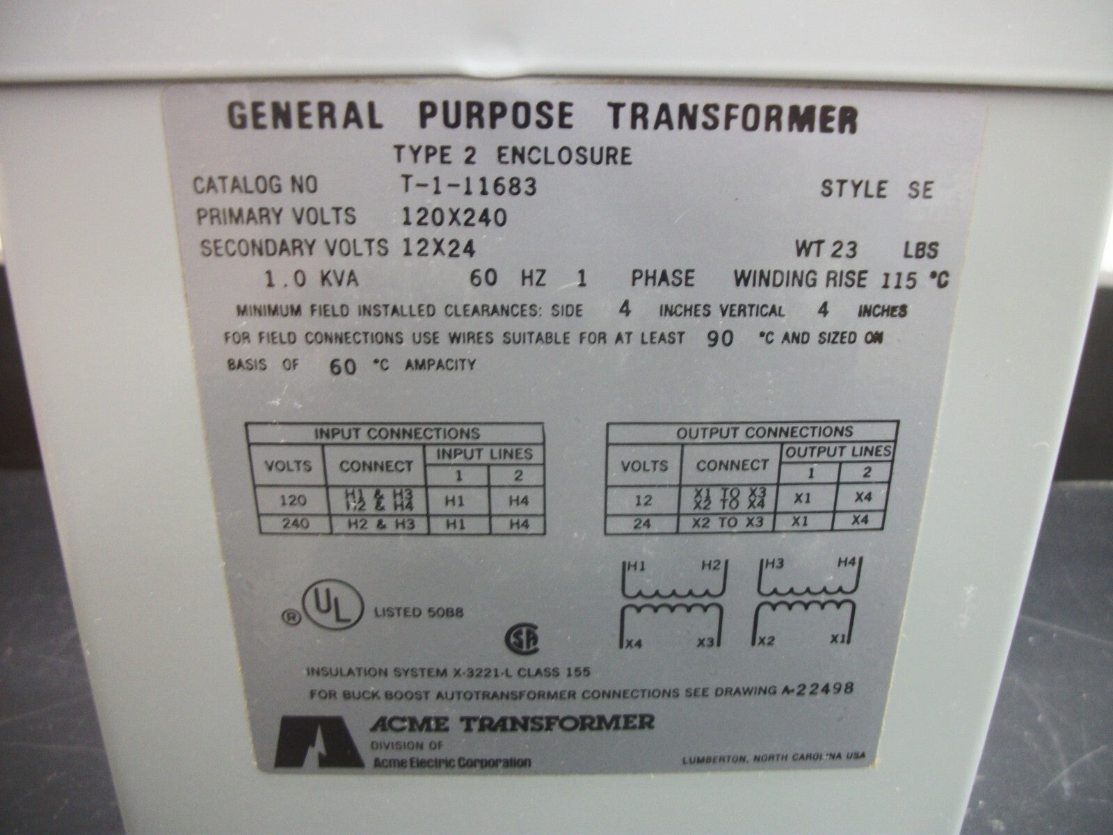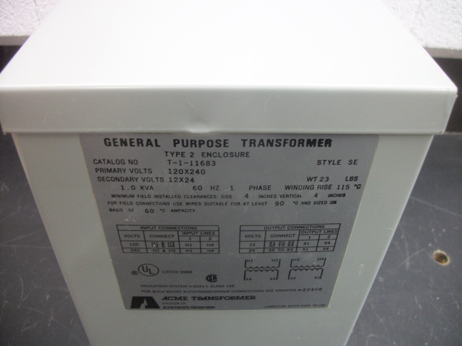 ACME 1KVA 1PH TRANSFORMER T-1-11683 HV 120X240 LV 12X24 NIB