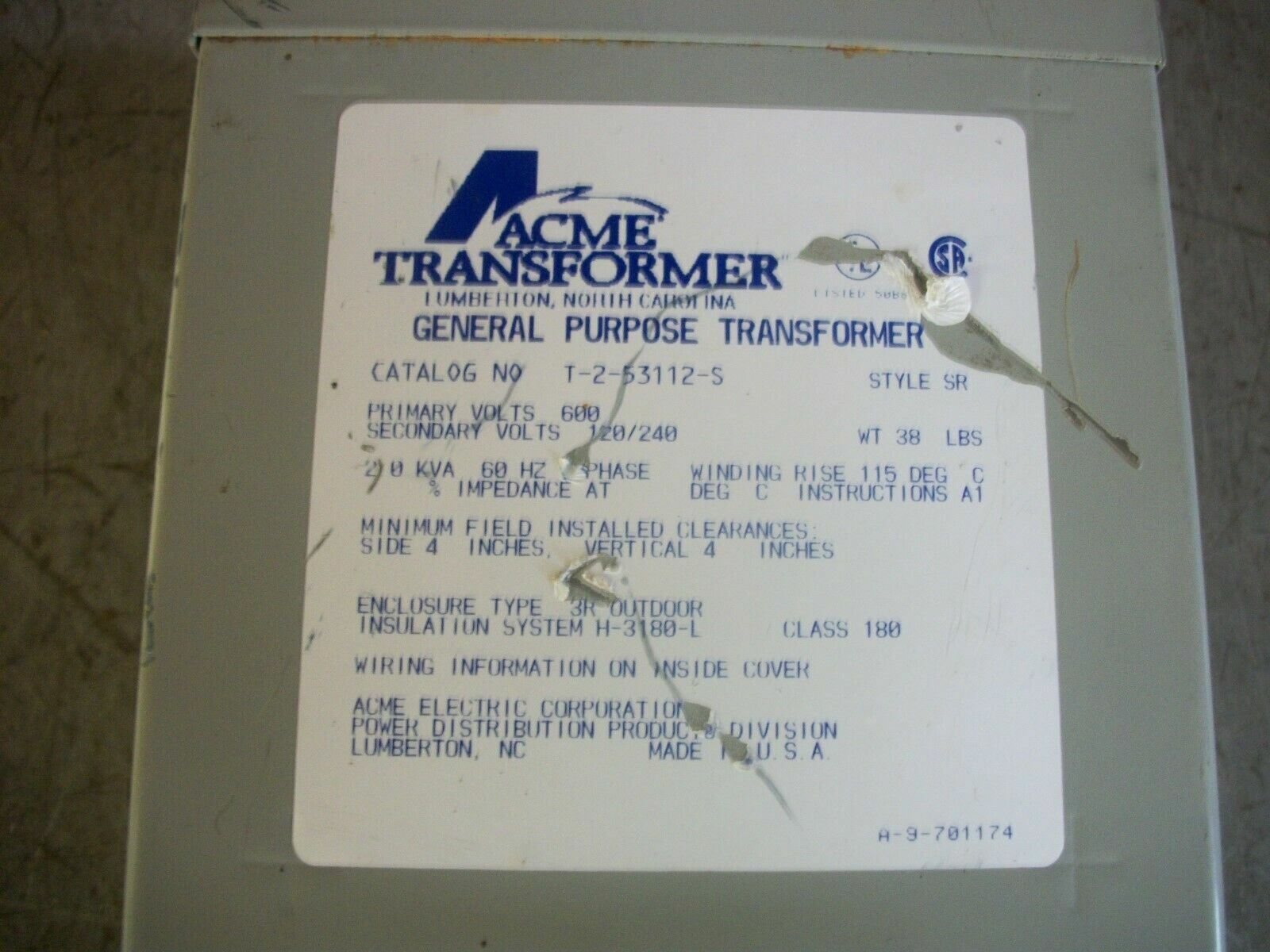 ACME 2KVA 1PH TRANSFORMER T-2-53112-S HV 600 LV 120/240