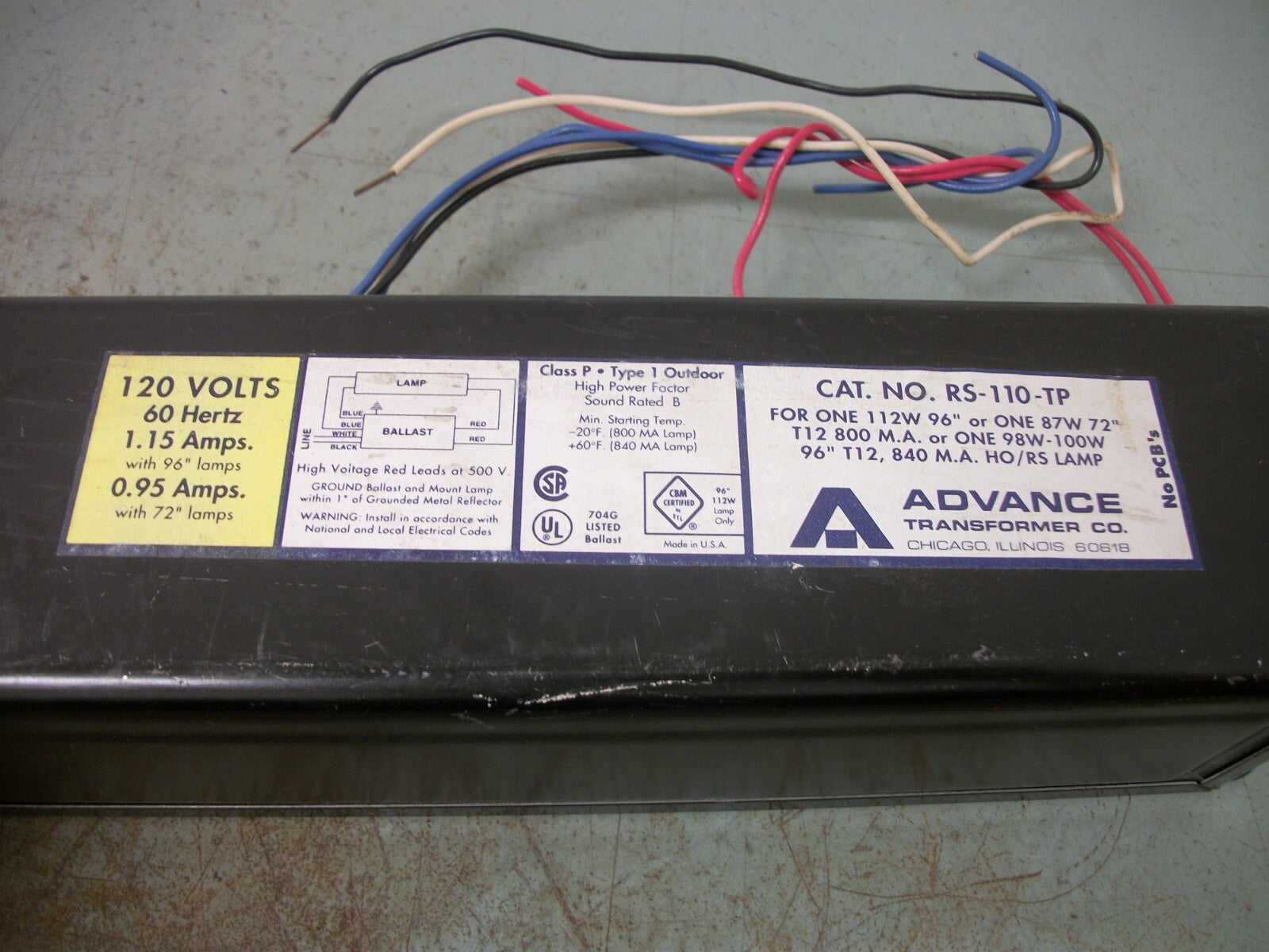 ADVANCE BALLAST RS-110-TP 120VOLT