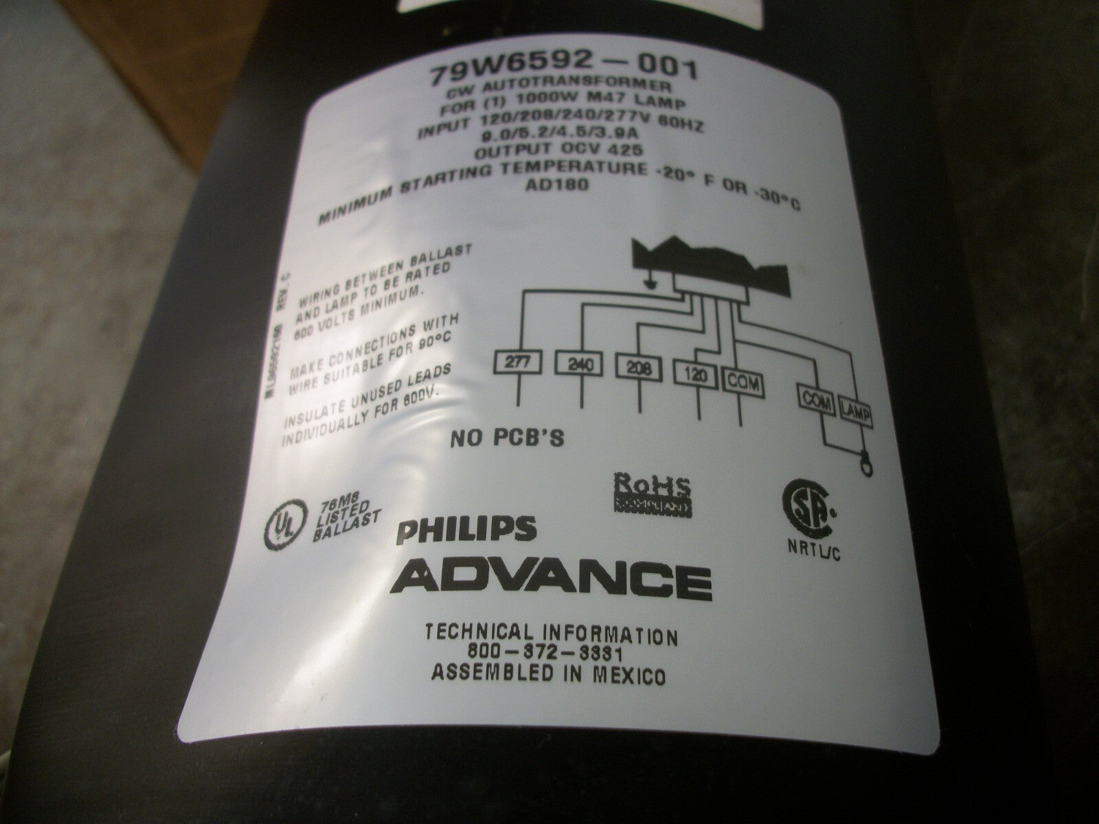 ADVANCE CW AUTOTRANSFORMER FOR 1000WATT M47 LAMP 79W6592-001 NIB