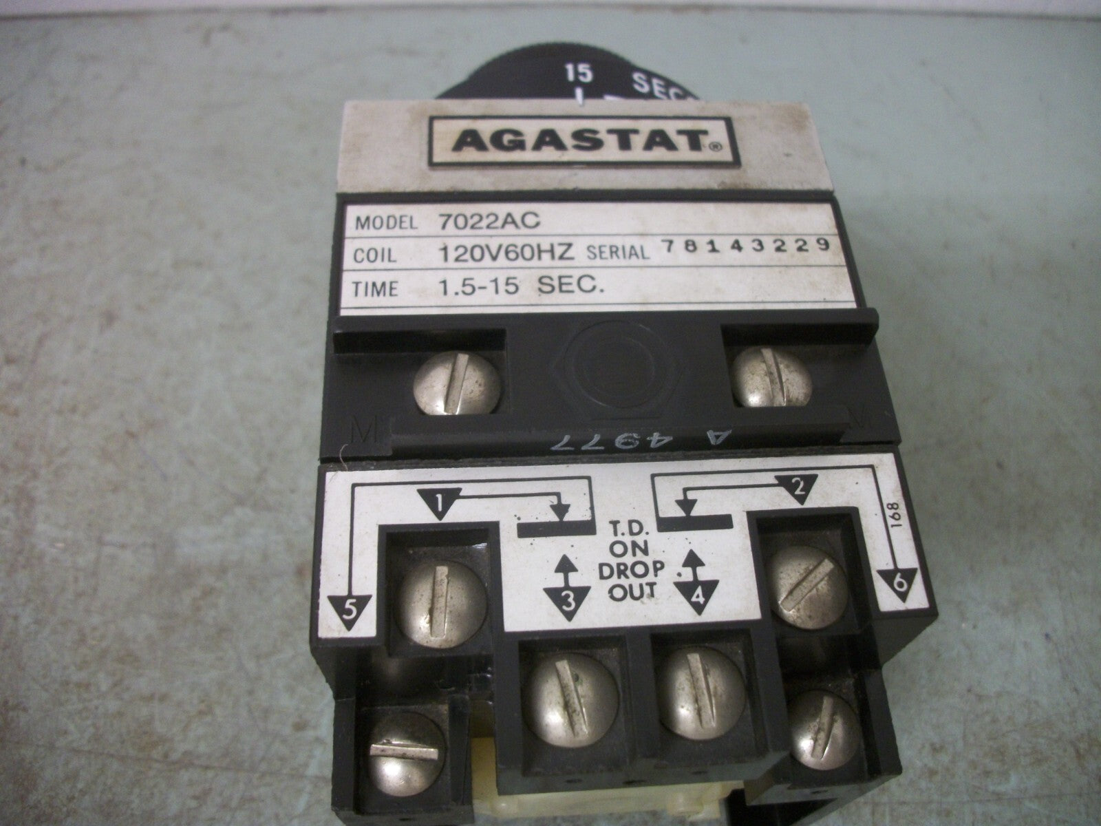 AGASTAT TIME DELAY RELAY 7022AC 120VCOIL 1.5-15SEC NOB