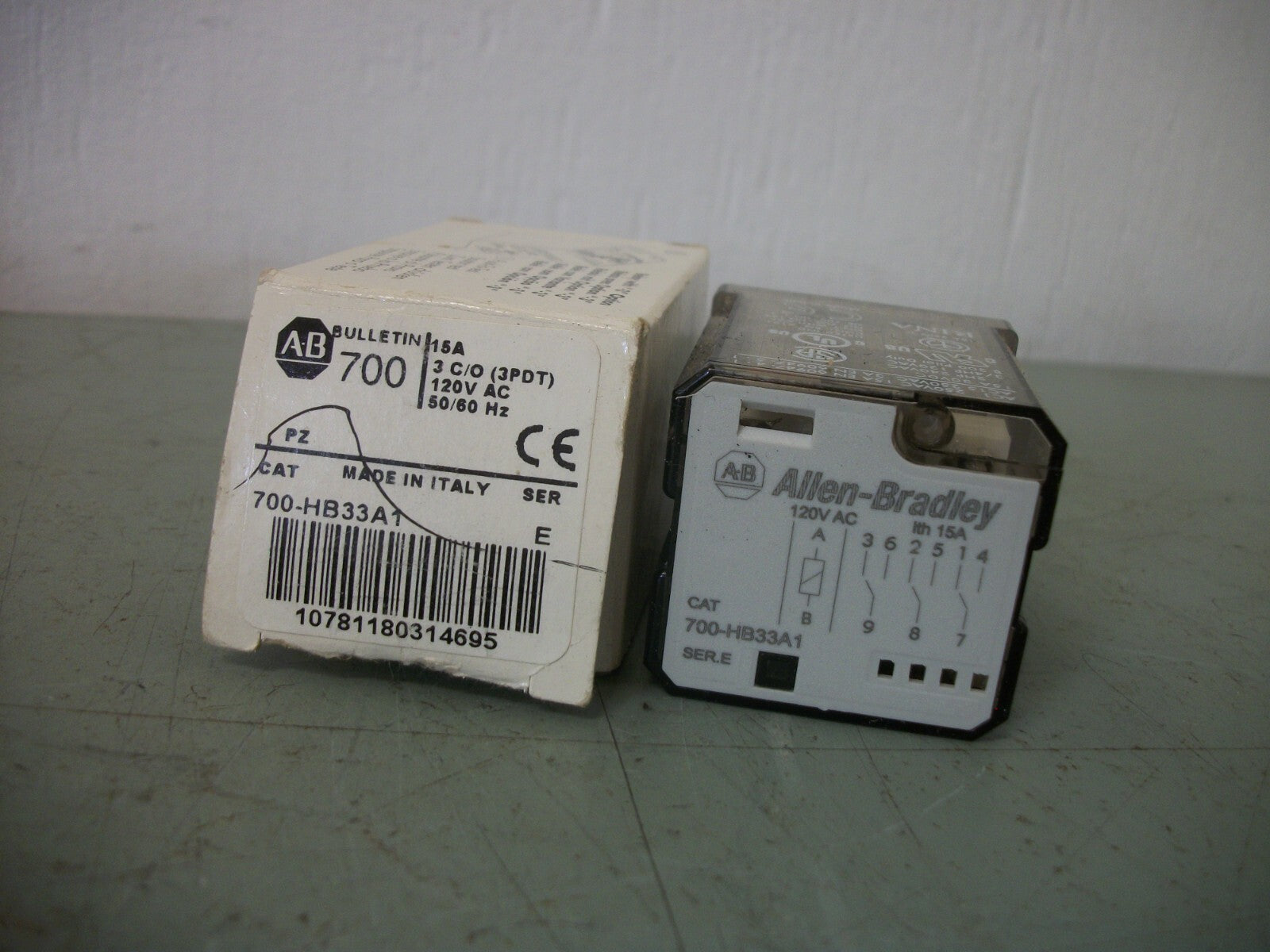 ALLEN-BRADLEY 3PDT PLUG-IN RELAY 700-HB33A1 120VCOIL 15AMP NIB