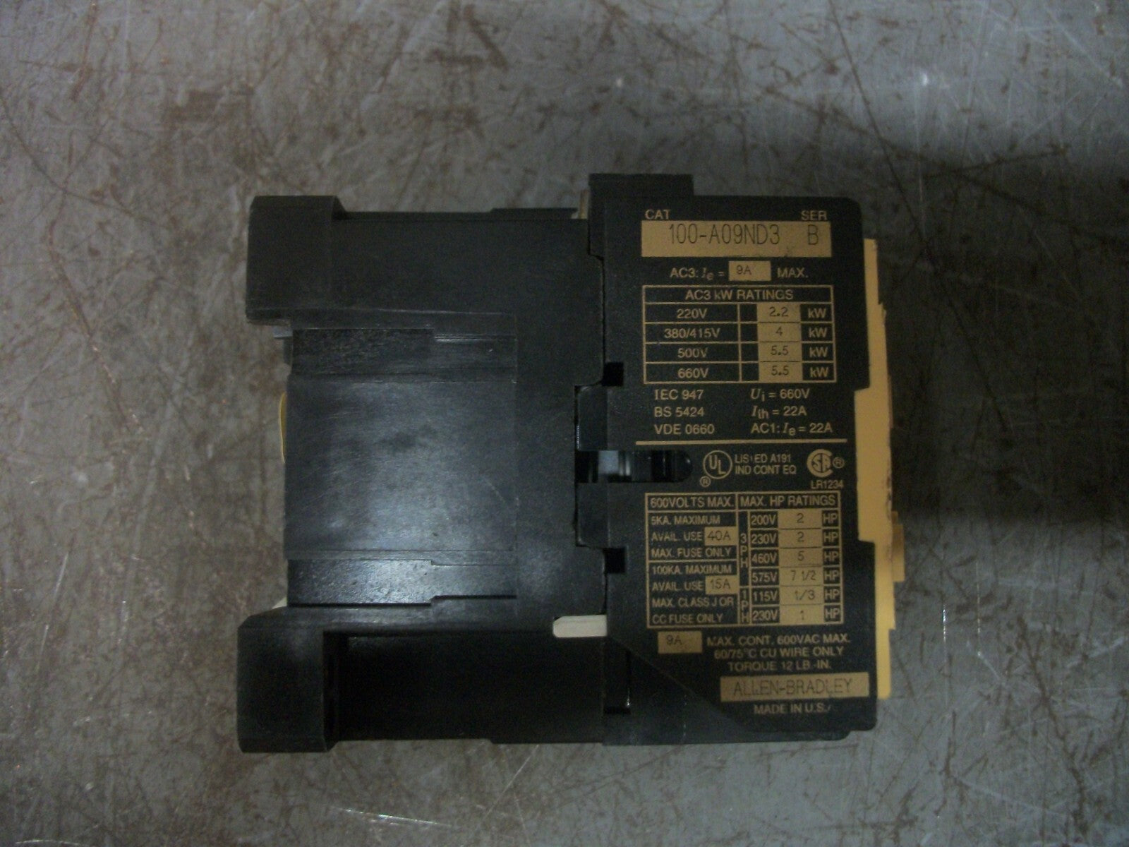 ALLEN-BRADLEY CONTACTOR 100-A09ND3 9AMP 120VCOIL 3PH 600V 7.5HP
