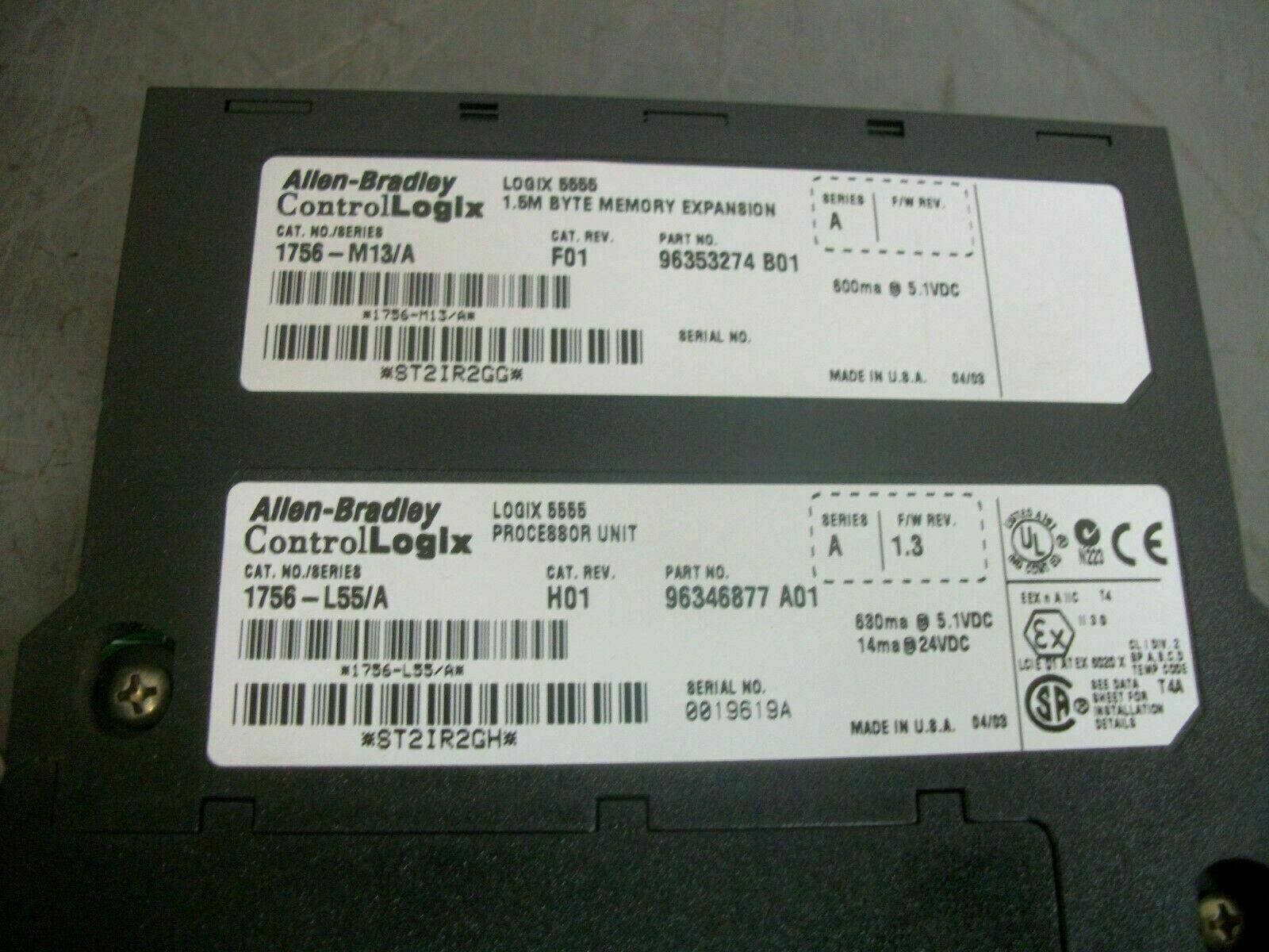 ALLEN-BRADLEY CONTROL LOGIX 5555 PROCESSOR UNIT 1756-L55/A W/1756-M13/A