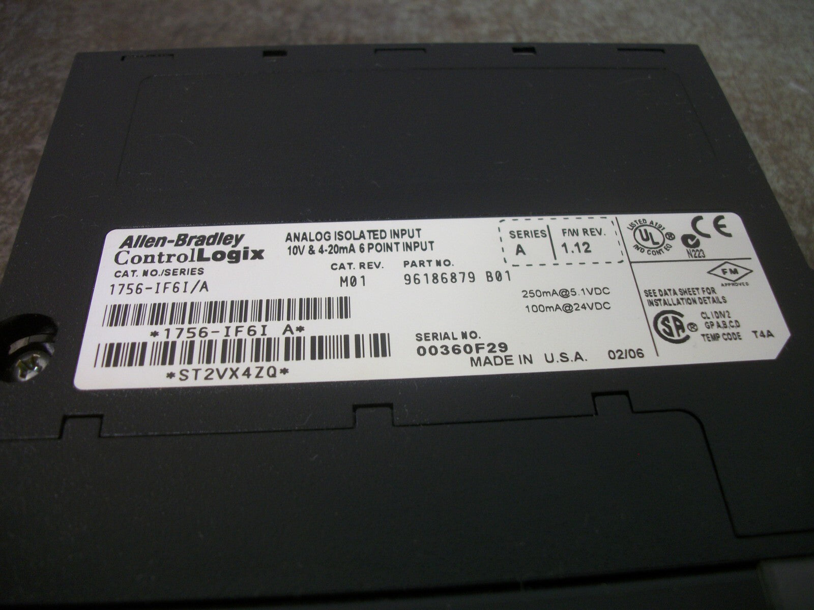 ALLEN-BRADLEY CONTROL LOGIX ANALOG ISOLATED INPUT 10V 6PT MODULE 1756-IF6I/A