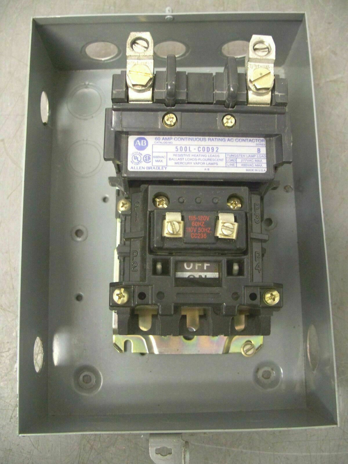 ALLEN-BRADLEY ENCL 60AMP LIGHTING CONTACTOR 500L-COD92 120VCOIL