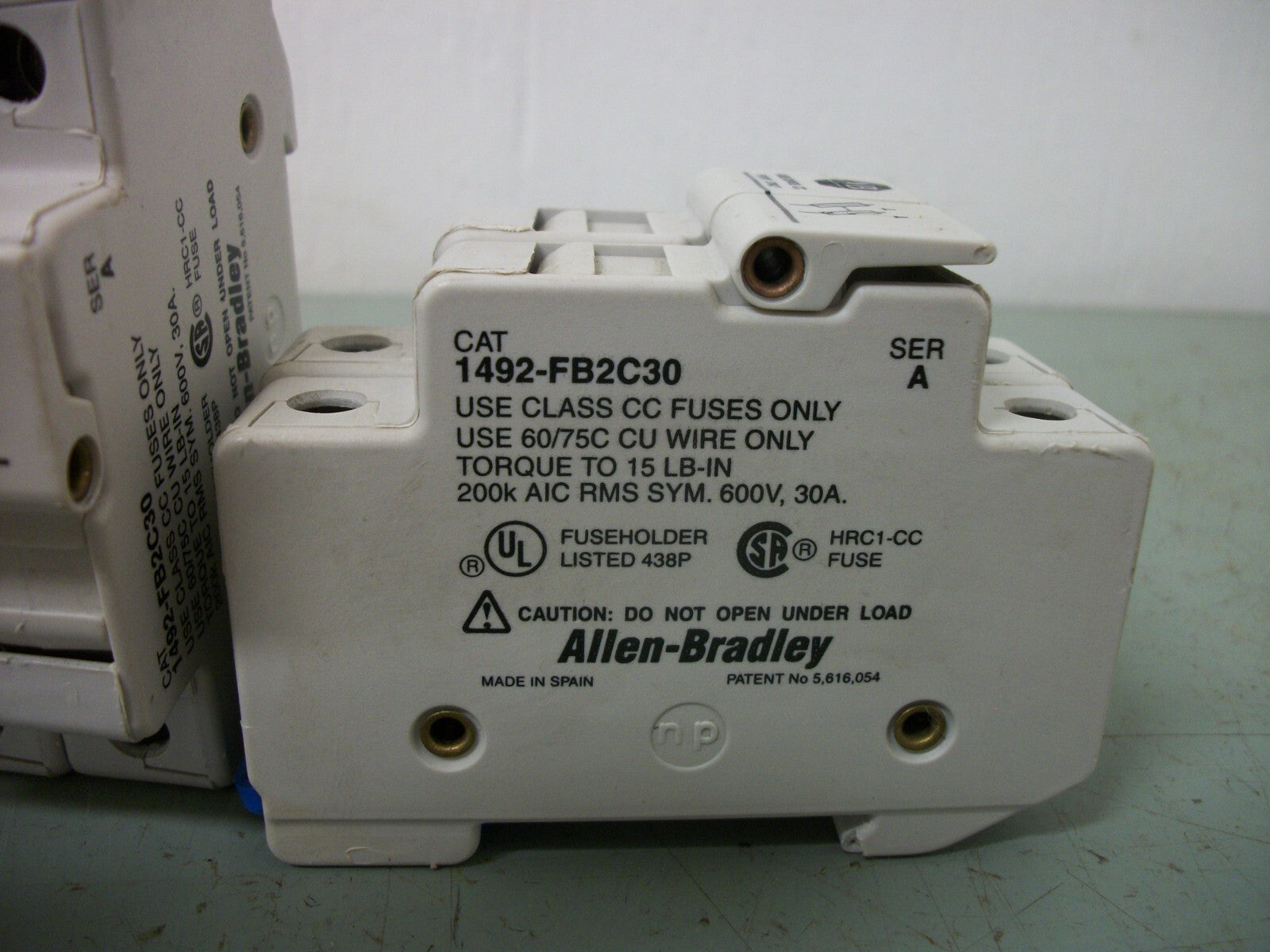 ALLEN-BRADLEY LOT OF 3 CLASS CC FUSEHOLDERS 1492-FB2C30 30AMP 600VOLT 2POLE