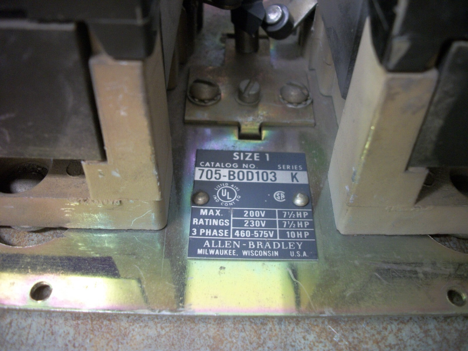 ALLEN-BRADLEY REV SIZE 1 MOTOR STARTER 705-BOD103 120VCOIL 3PH 600V 10HP *NOTE*