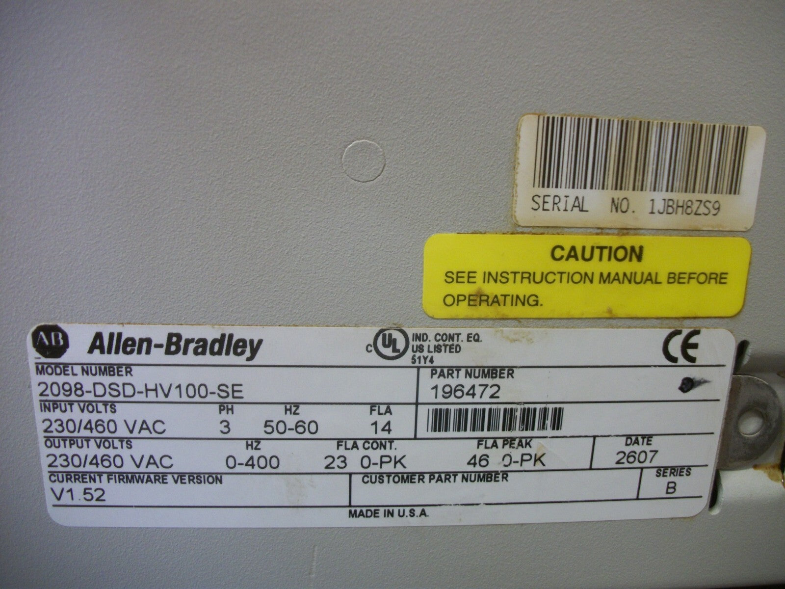 ALLEN-BRADLEY ULTRA 3000 SERVO DRIVE 2098-DSD-HV100-SE 230/460VOLT 3PH
