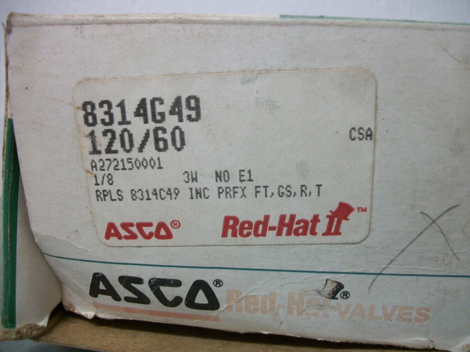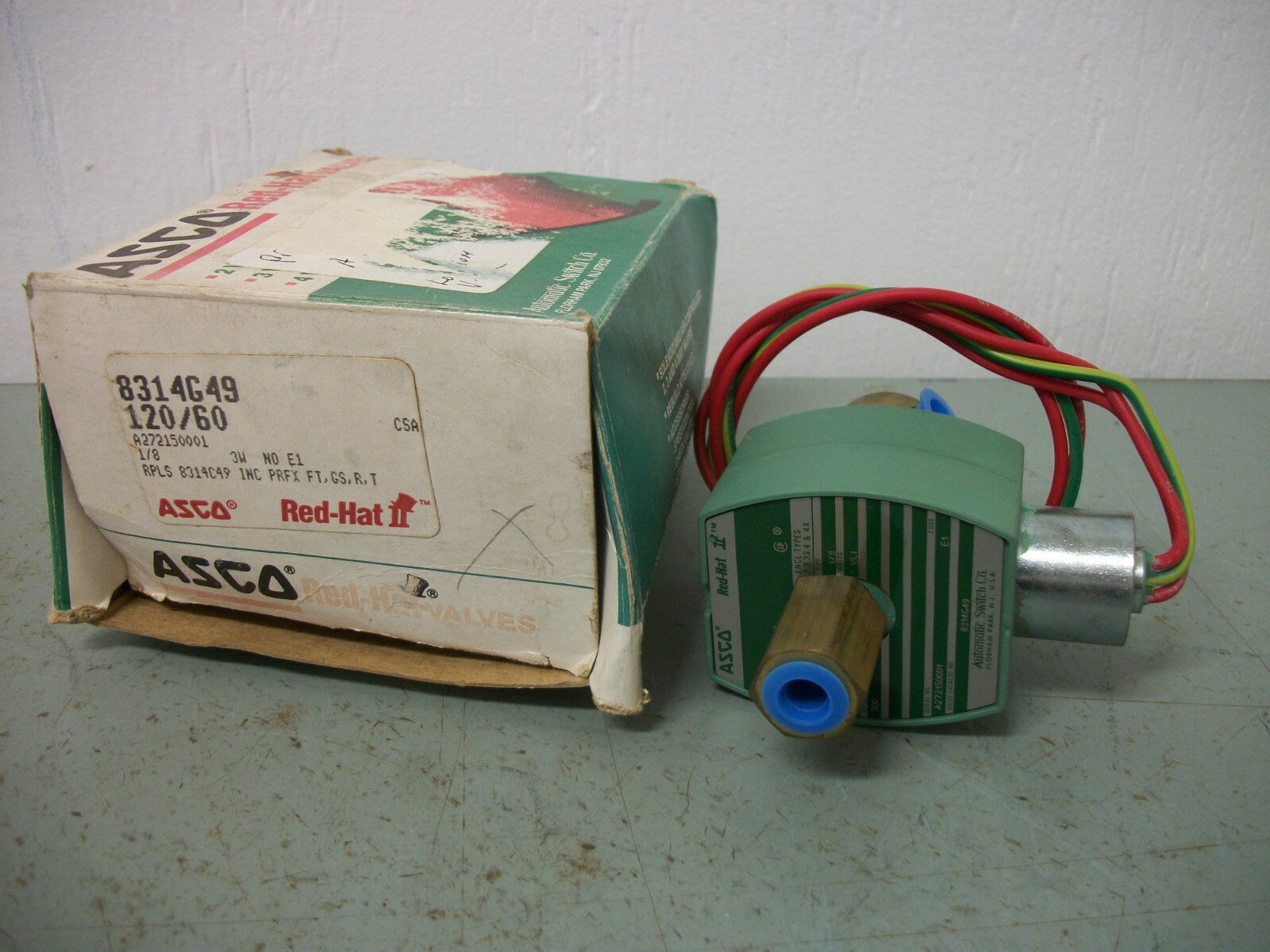 ASCO RED HAT 1/8" NPT SOLENOID VALVE 8314G49 300PSI 10.1WATT 120VCOIL NIB