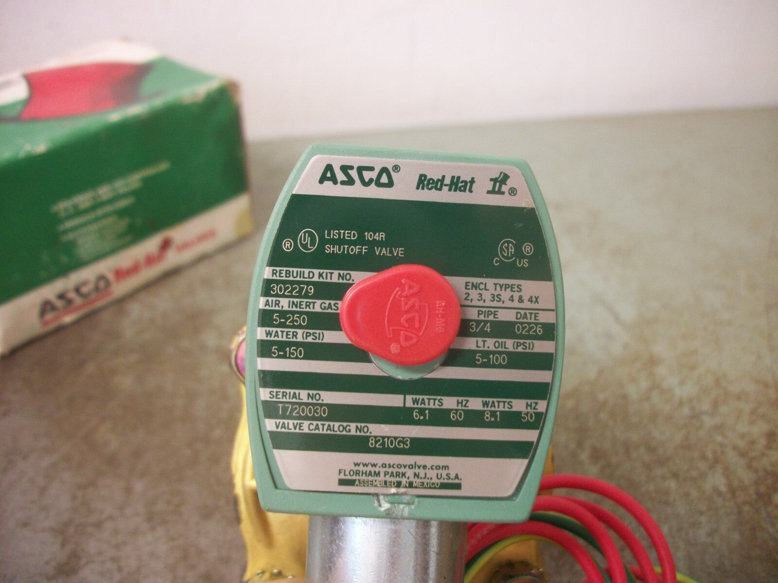 ASCO RED HAT 3/4" SOLENOID VALVE 8210G3 240VCOIL 5-150PSI 6.1WATT NIB