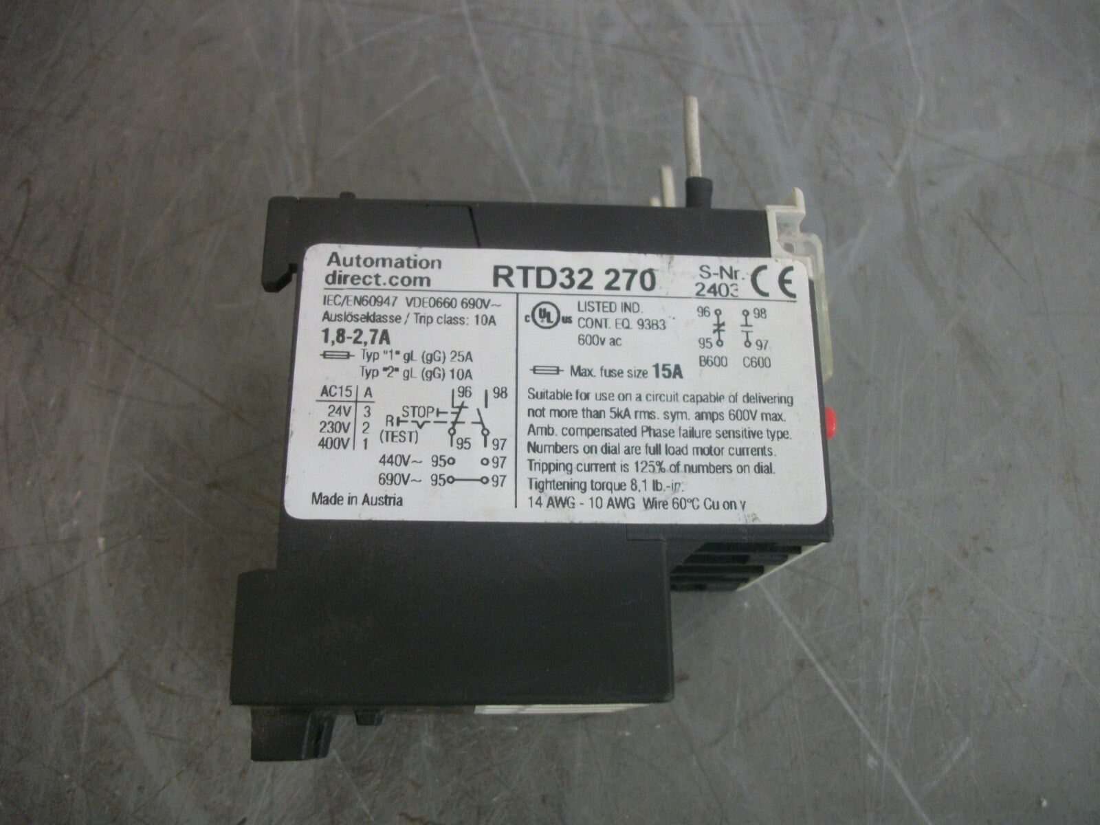 AUTOMATION DIRECT THERMAL OVERLOAD RELAY RTD32 270 1.8-2.7AMP