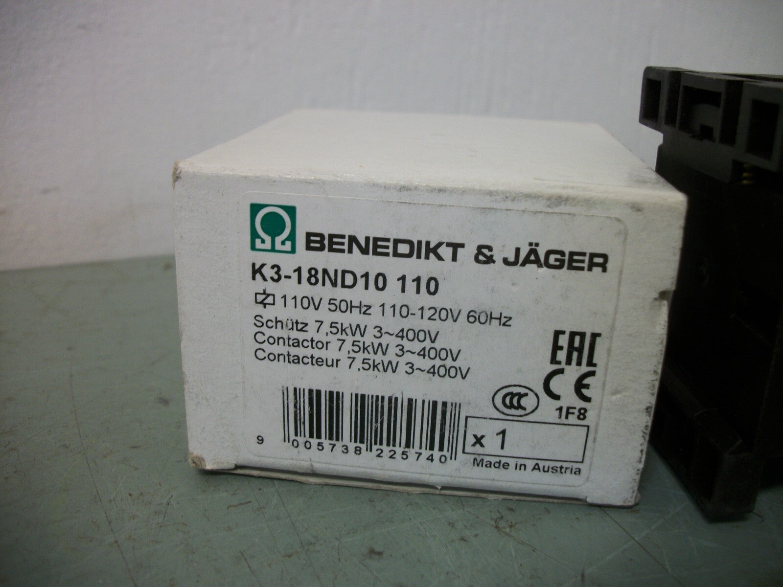 BENEDIKT & JAGER CONTACTOR K3-18ND10 110 30AMP 120VCOIL 3PH 600V 7.5HP NIB