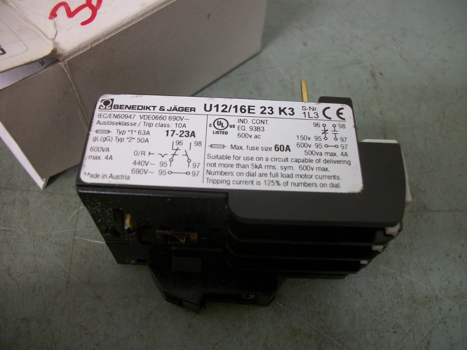 BENEDIKT & JAGER THERMAL OVERLOAD RELAY U12/16E 23 K3 17-23AMP NIB