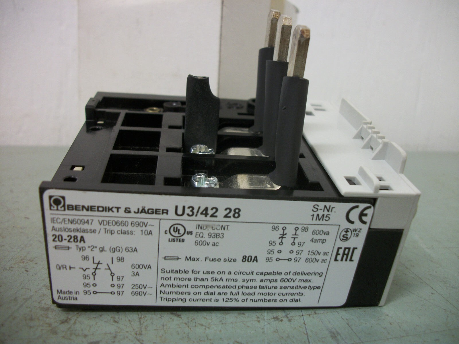 BENEDIKT & JAGER THERMAL OVERLOAD RELAY U3/42 28 20-28AMP NIB
