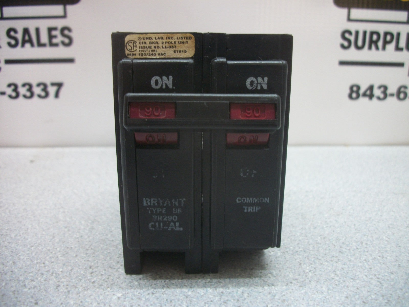 BRYANT BR CIRCUIT BREAKER BR290 90AMP 240VOLT 2POLE CHIPPED