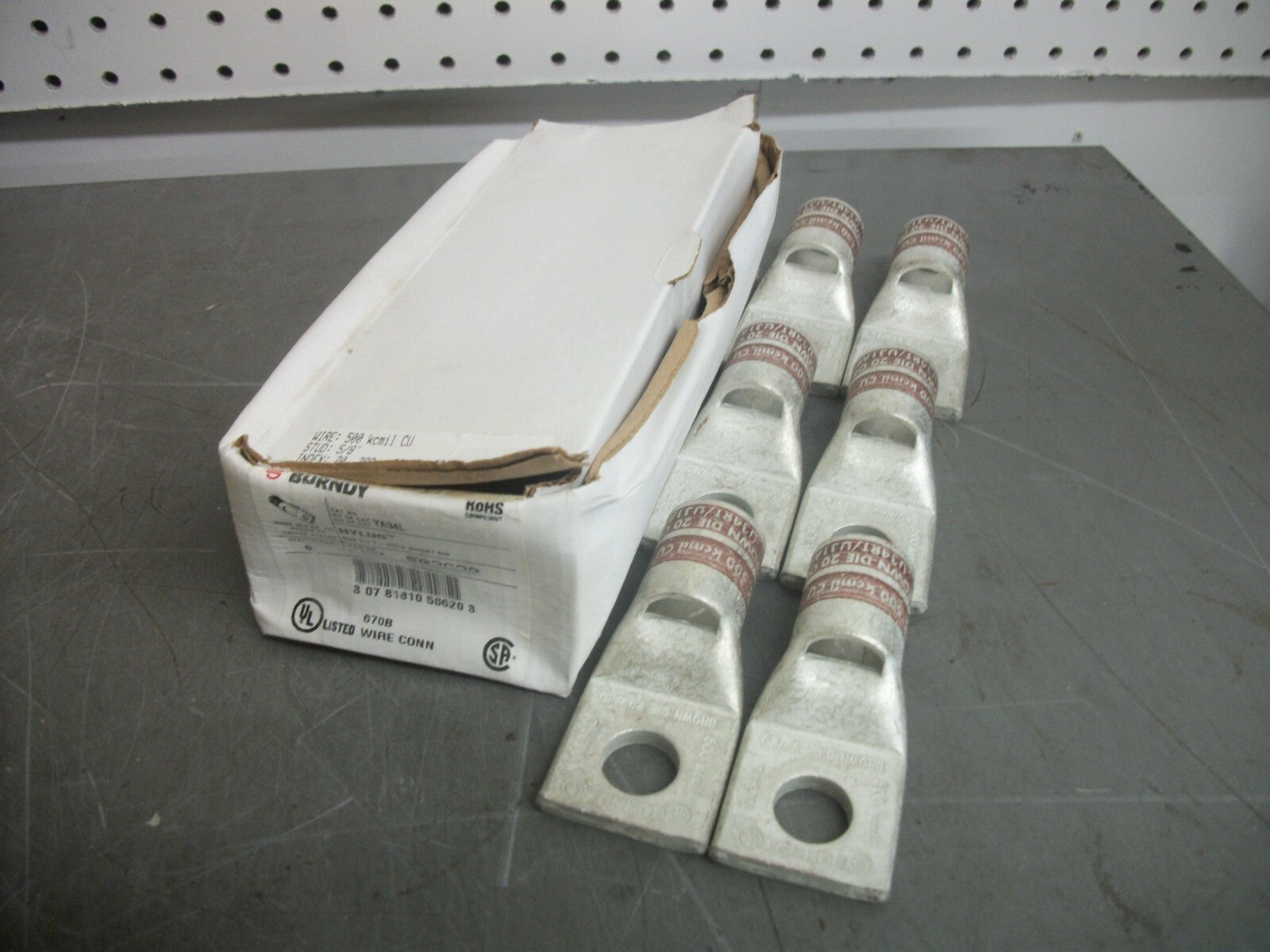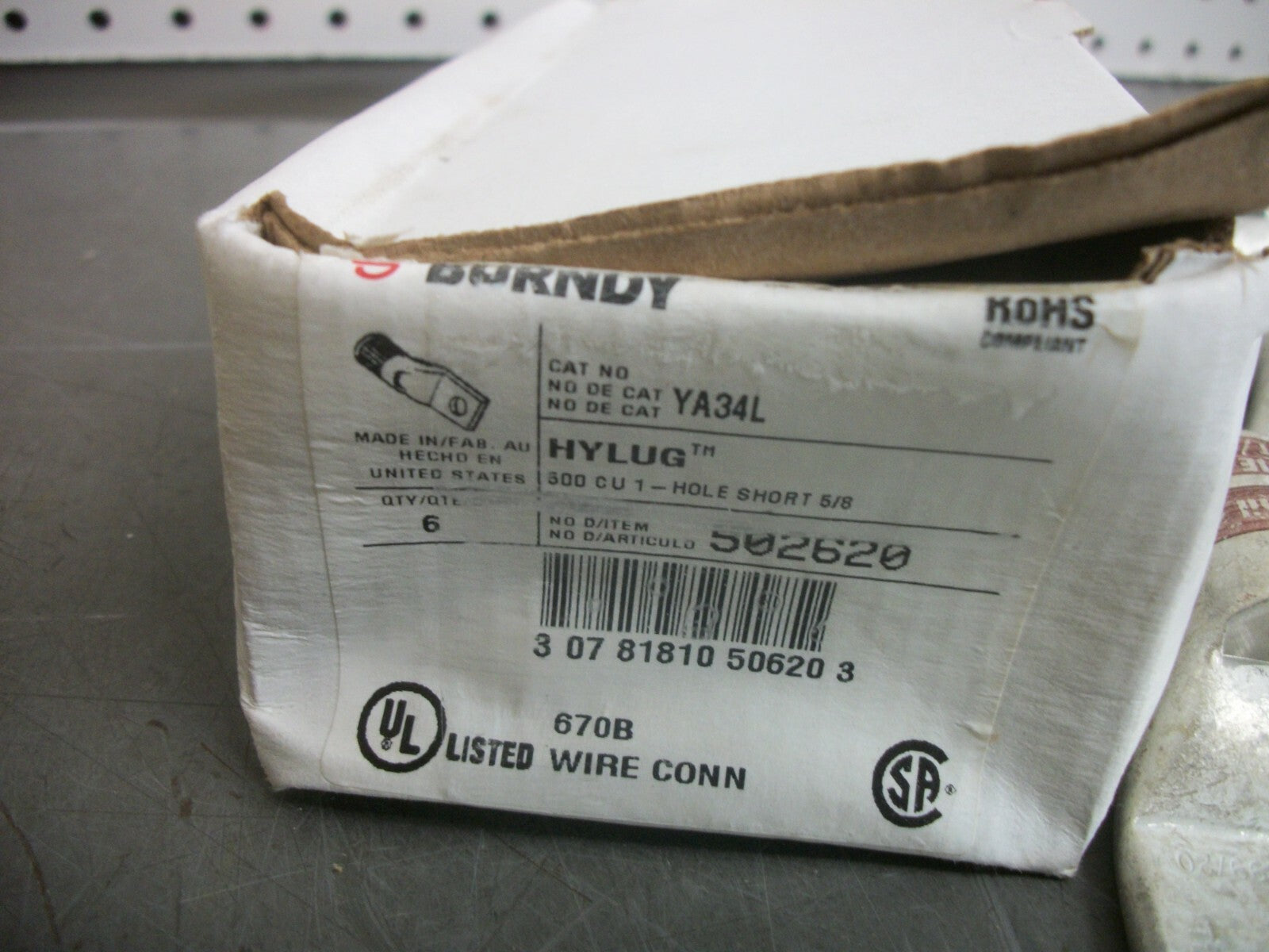 BURNDY 502620 BOX OF 6 HYLUG 500 CU 1-HOLE SHORT 5/8 COMPRESSION LUGS YA34L NIB