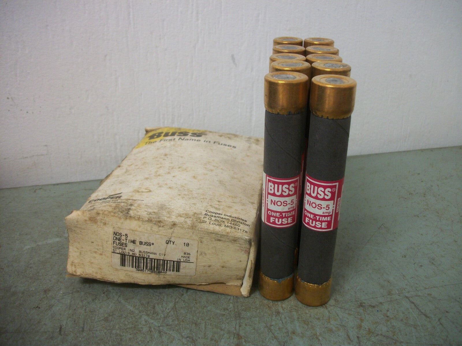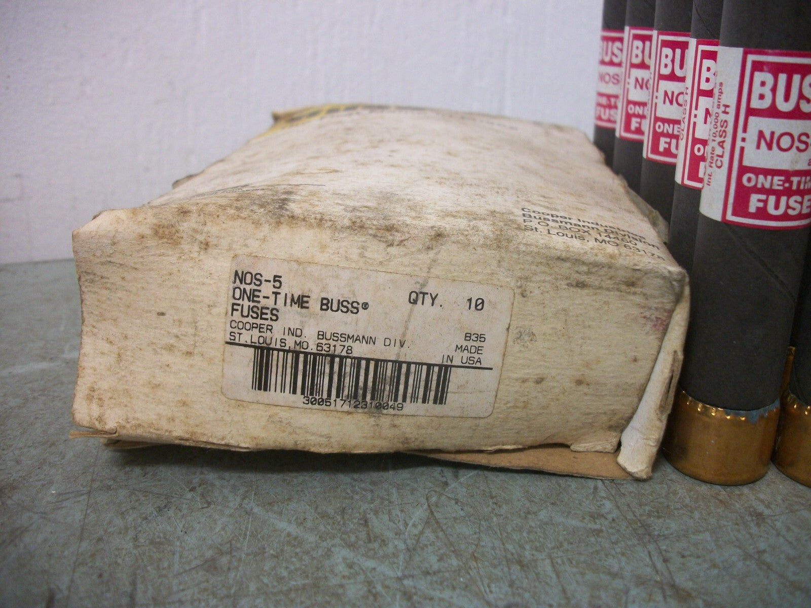 BUSSMANN BOX OF 10 ONE-TIME FUSES NOS5 5AMP 600VOLT NIB