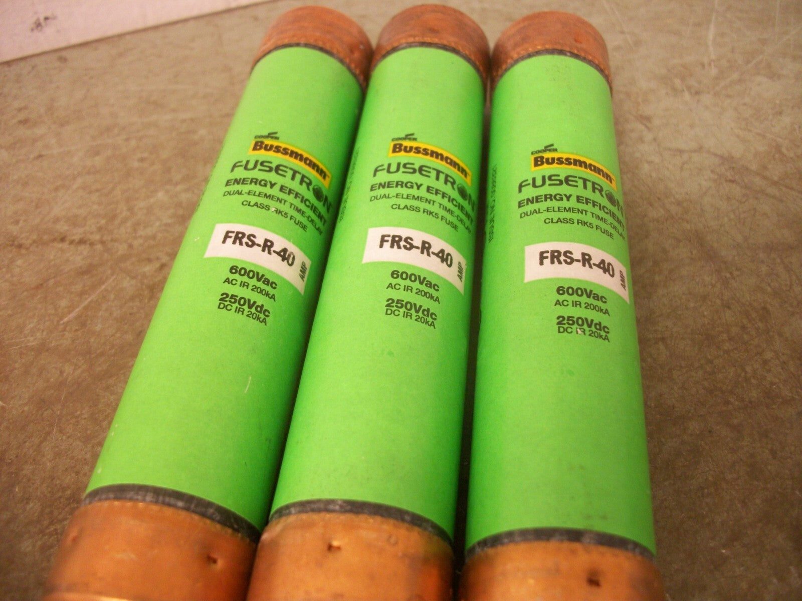 BUSSMANN LOT OF 3 ENERGY EFFICIENT FUSETRON FUSES FRS-R-40 40AMP 600VOLT
