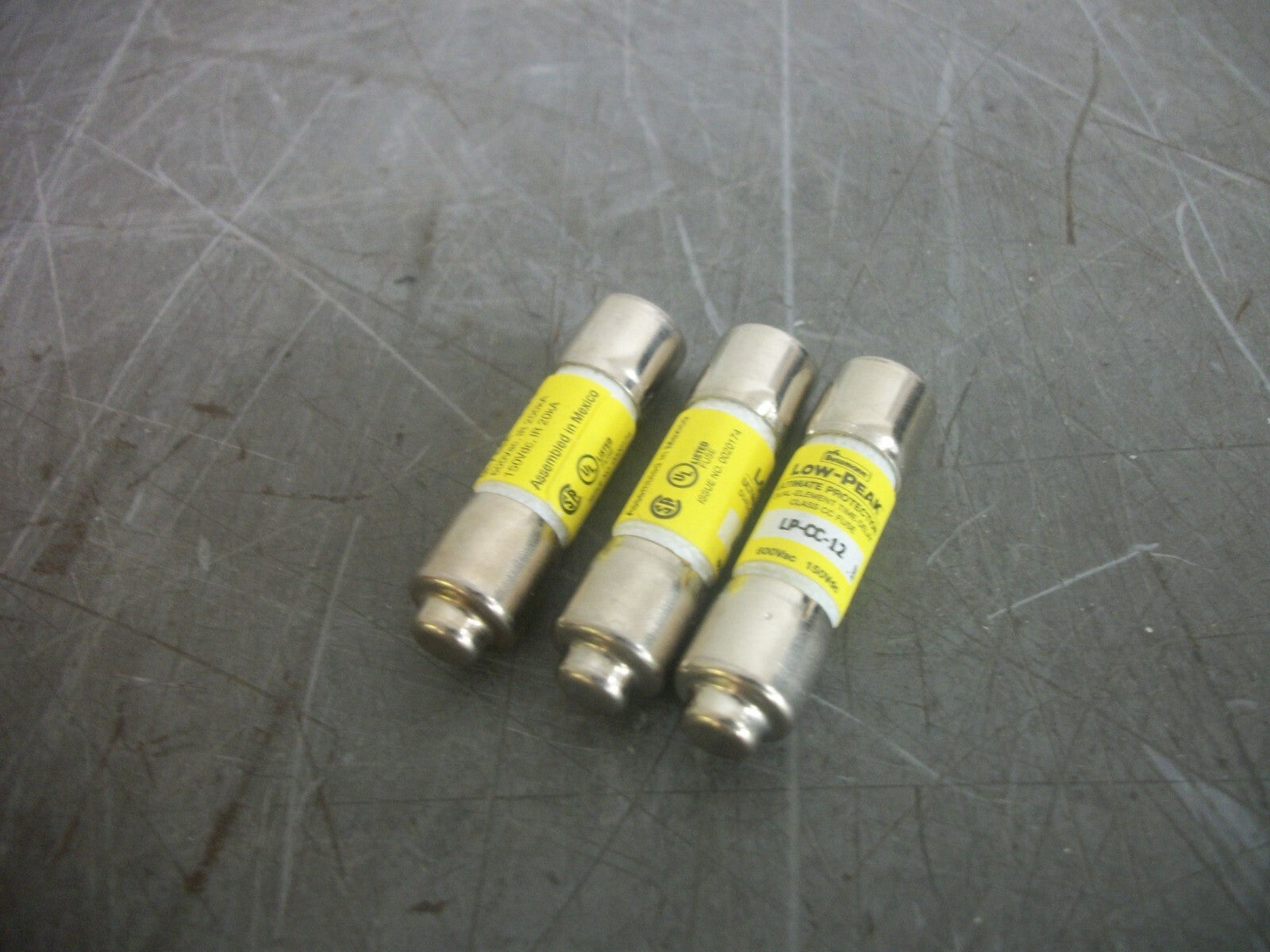 BUSSMANN LOT OF 3 LOW-PEAK FUSES LP-CC-12 12AMP 600VOLT NOB