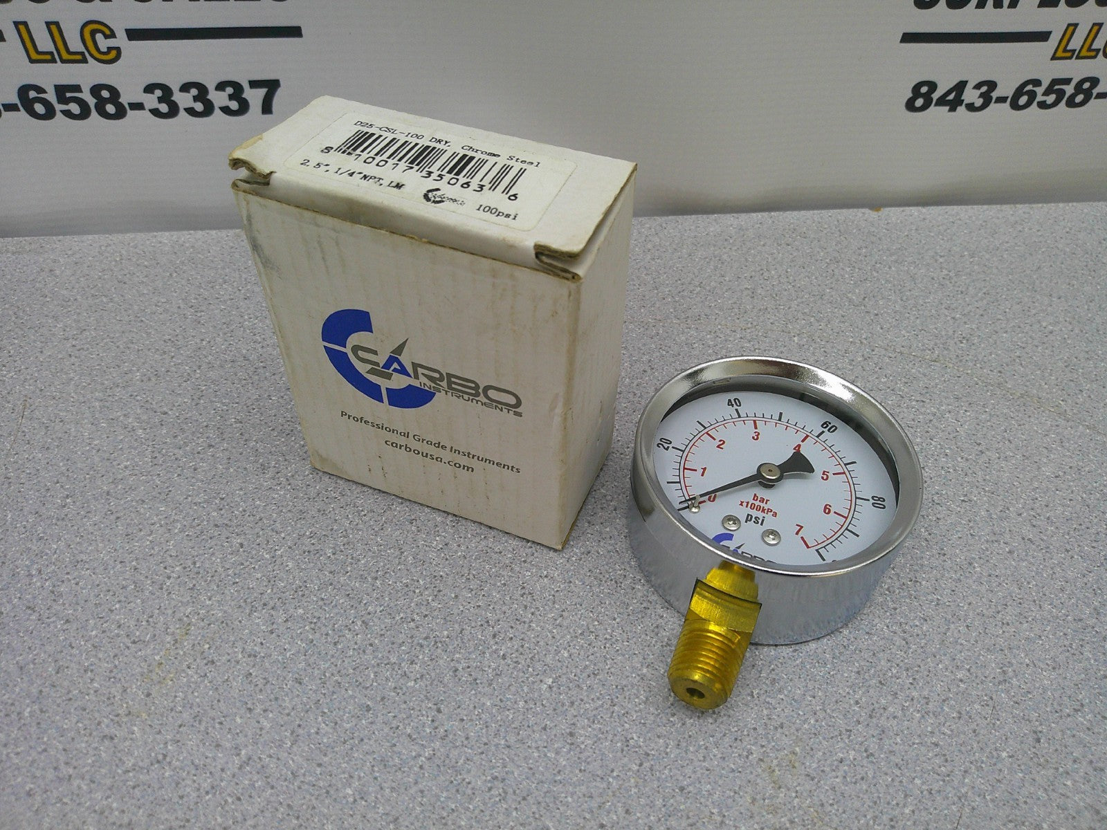 CARBO INDUSTRIES 2.5" 1/4" NPT PNEUMATIC PRESSURE GAUGE D25-CSL-100 100PSI NIB