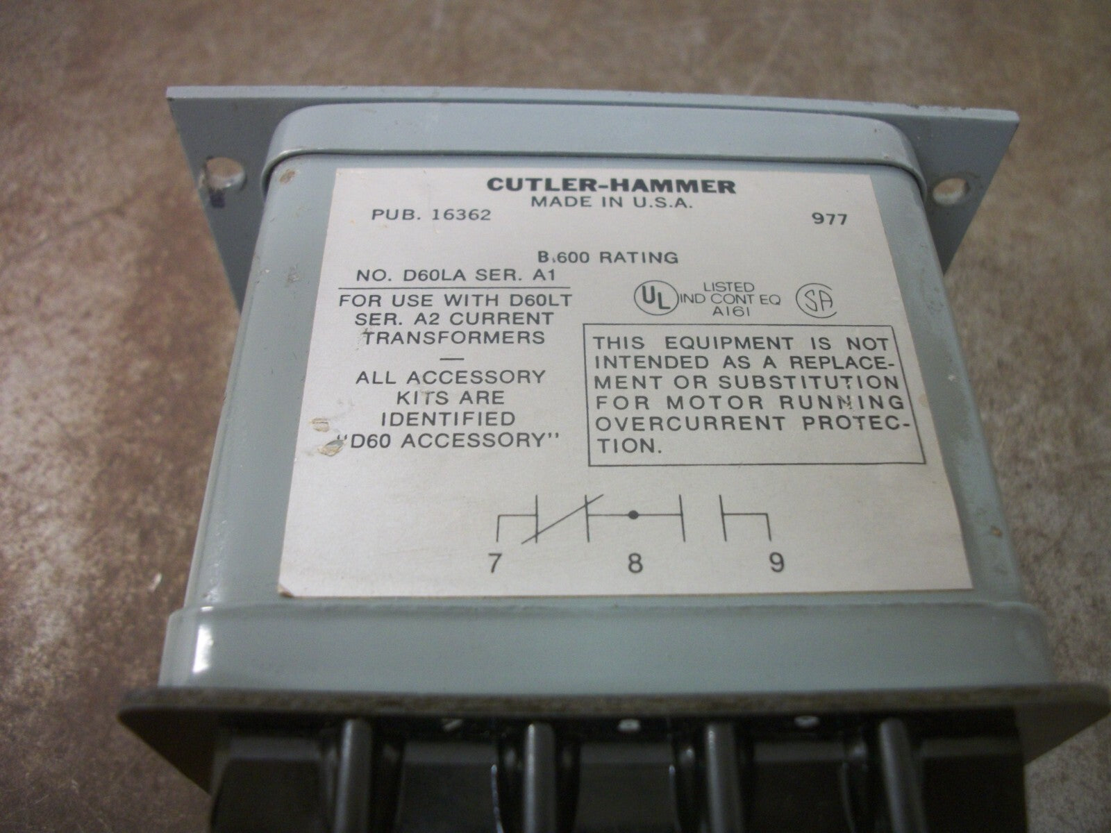 CUTLER-HAMMER ADJUSTABLE CURRENT RELAY TRANSFORMER D60LA