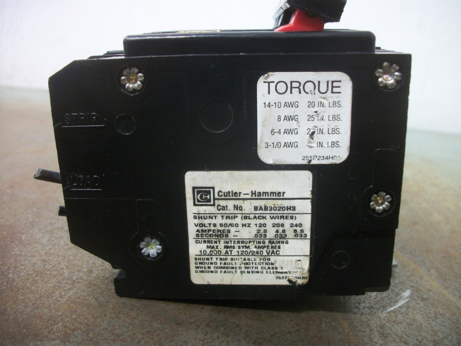 CUTLER-HAMMER BA CIRCUIT BREAKER BAB3020HS 20AMP 240VOLT 3POLE W/SHUNT