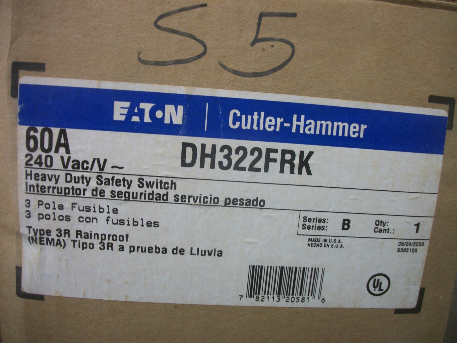 CUTLER-HAMMER DISCONNECT TYPE 3R DH322FRK 60AMP 240VOLT 3POLE FUSIBLE NIB