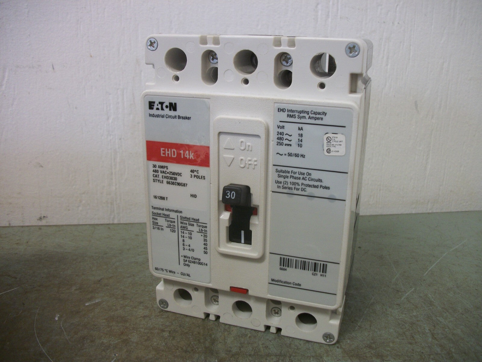 CUTLER-HAMMER EHD CIRCUIT BREAKER EHD3030 30AMP 480VOLT 3POLE RED NOB