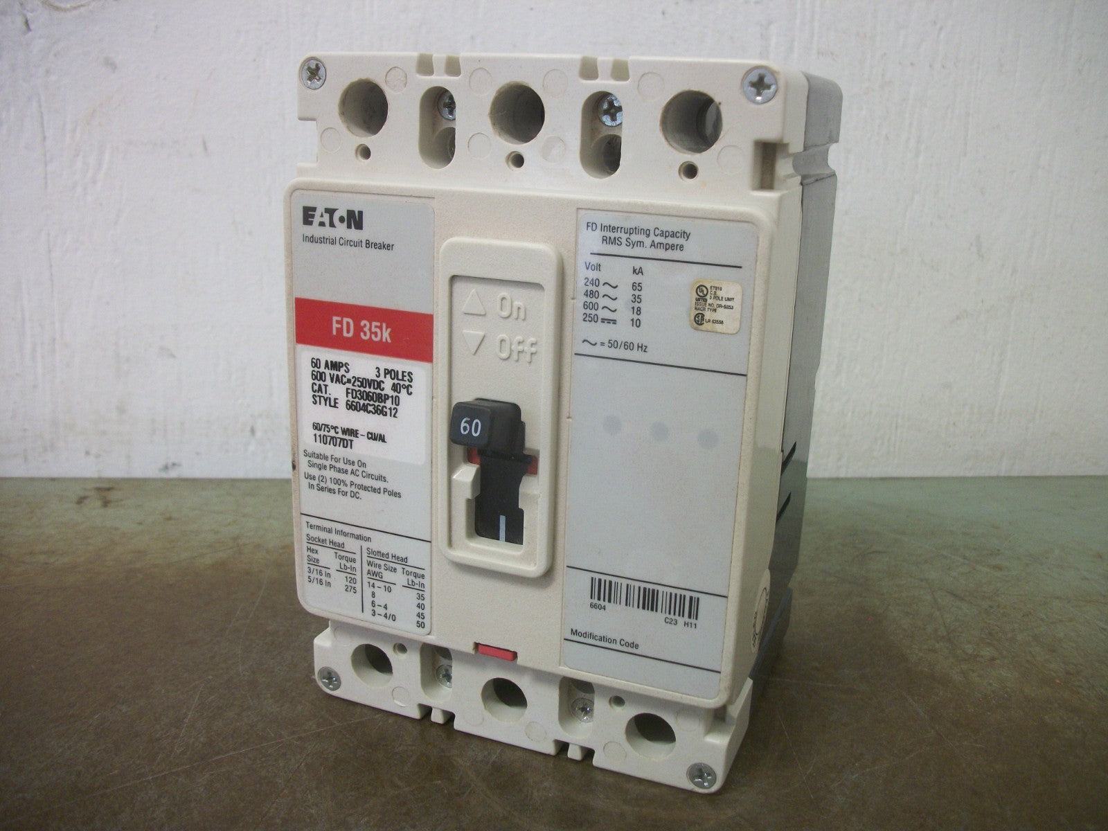 CUTLER-HAMMER FD CIRCUIT BREAKER FD3060BP10 60AMP 600VOLT 3POLE RED