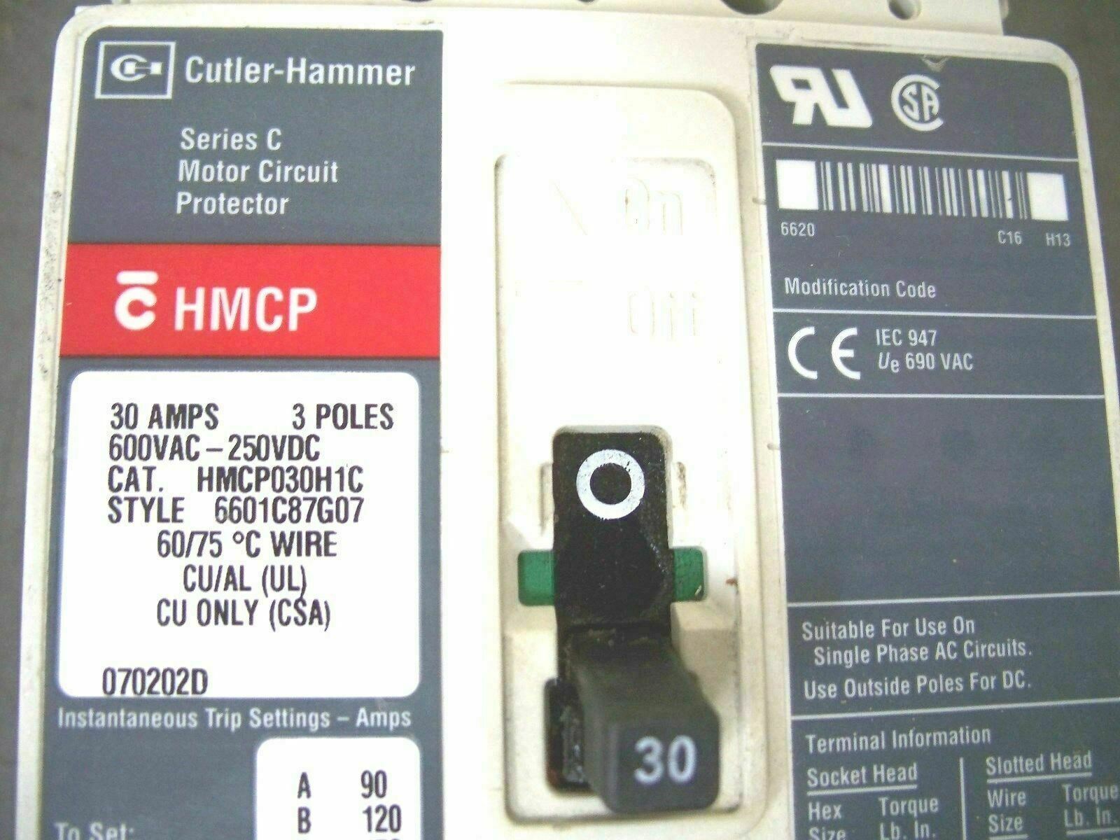 CUTLER-HAMMER HMCP CIRCUIT BREAKER HMCP030H1C 30AMP 600VOLT 3POLE