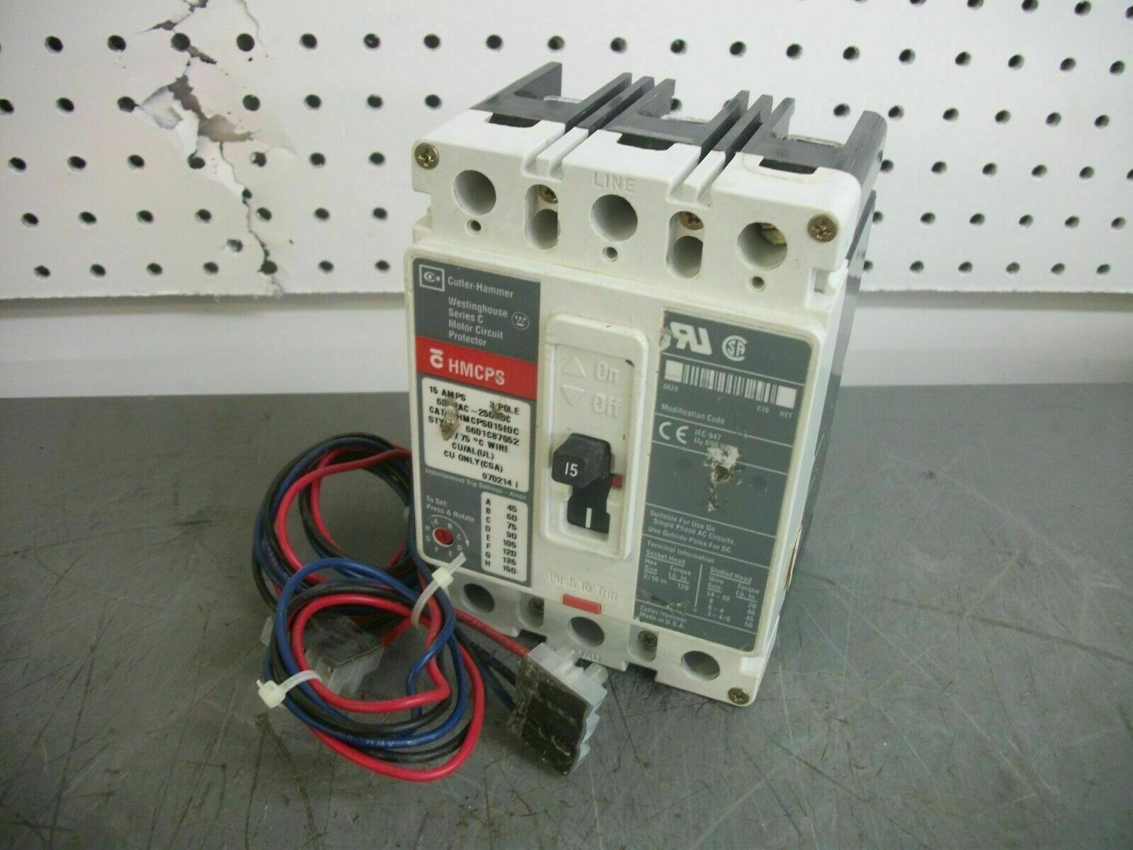 CUTLER-HAMMER HMCPS CIRCUIT BREAKER HMCPS015E0C 15AMP 600VOLT 3POLE W/AUX