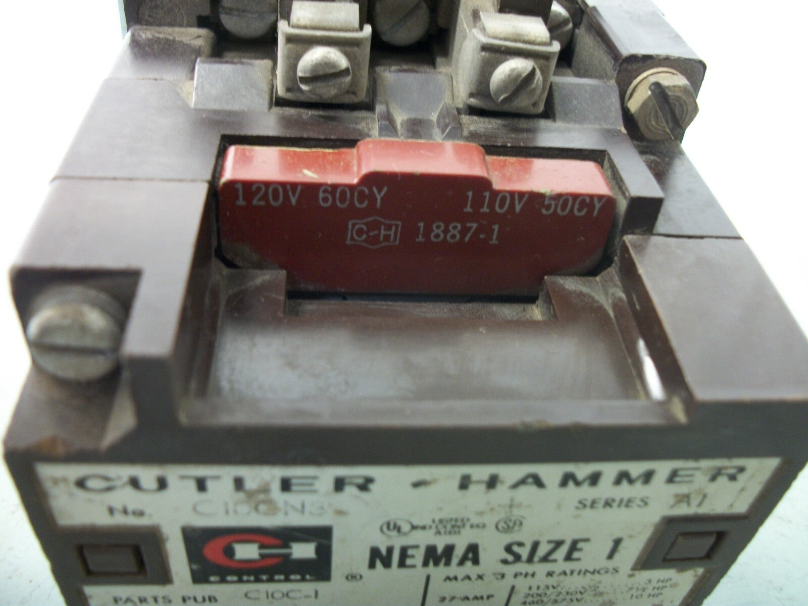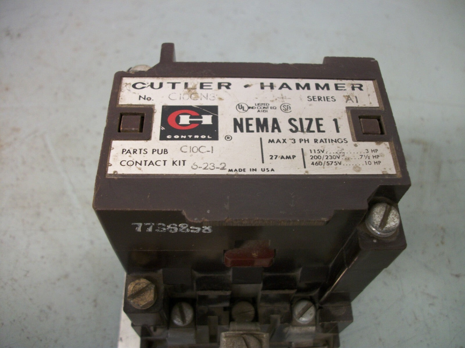 CUTLER-HAMMER SIZE 1 CONTACTOR C10CN3 27AMP 120VCOIL 3PH 600V 10HP