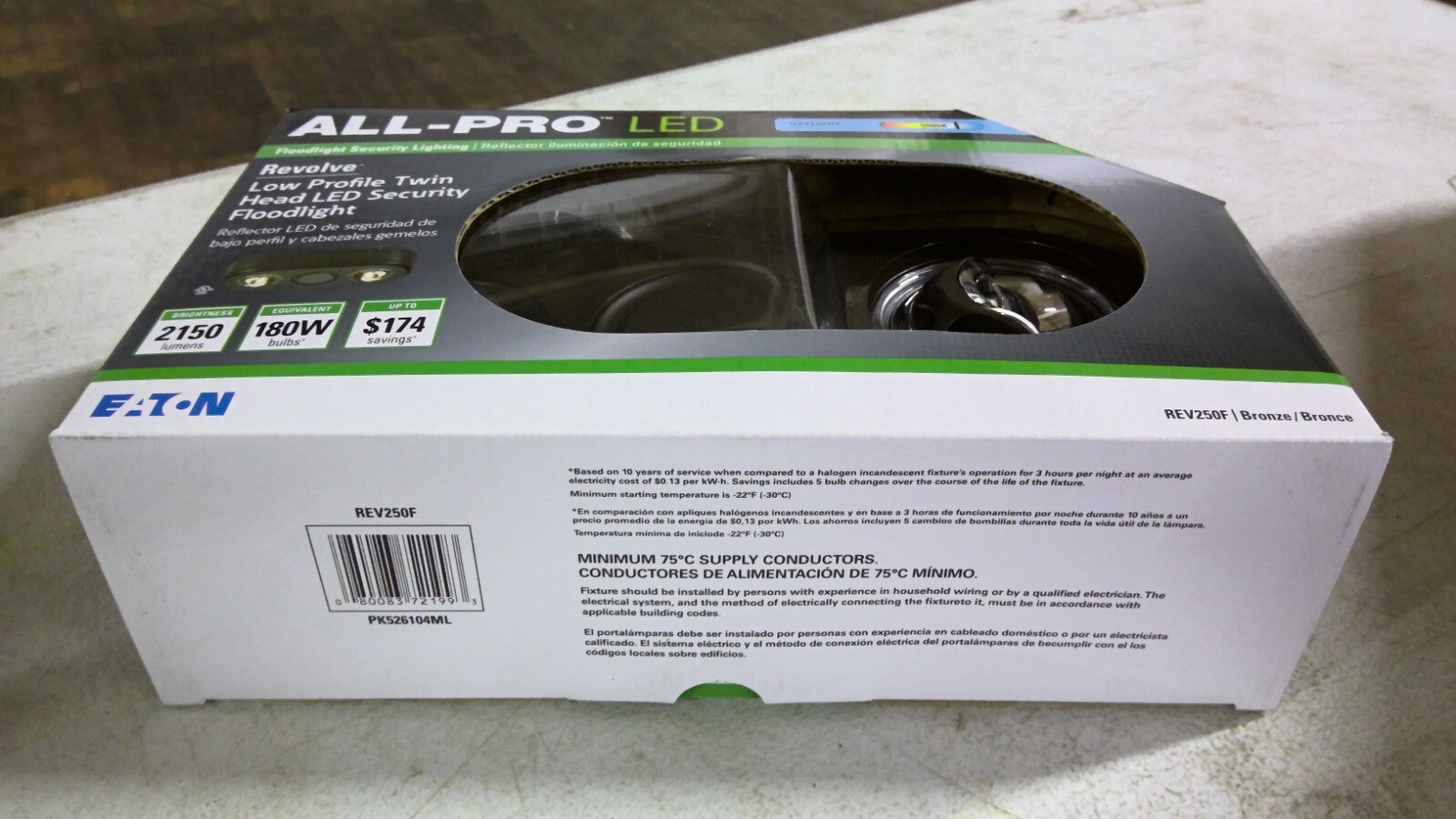 EATON ALL-PRO REVOLVE LOW PROFILE TWIN HEAD LED SECURITY FLOODLIGHT REV250F NIB