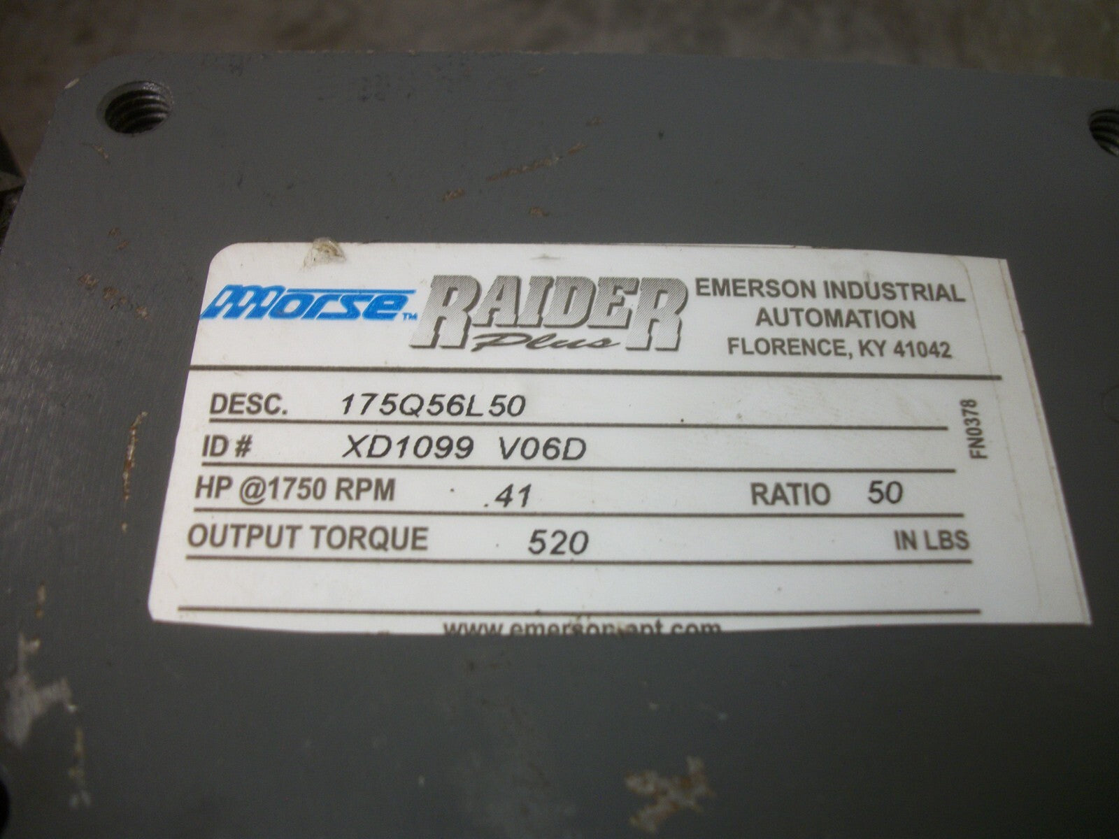 EMERSON MORSE RAIDER PLUS 50:1 RATIO WORM GEAR REDUCER 175Q56L50 1750RPM