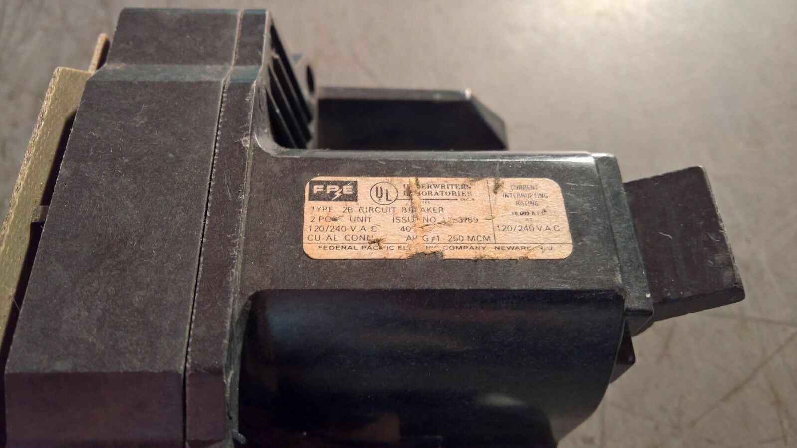 FEDERAL PACIFIC 2B CIRCUIT BREAKER 2B125 125AMP 240VOLT 2POLE