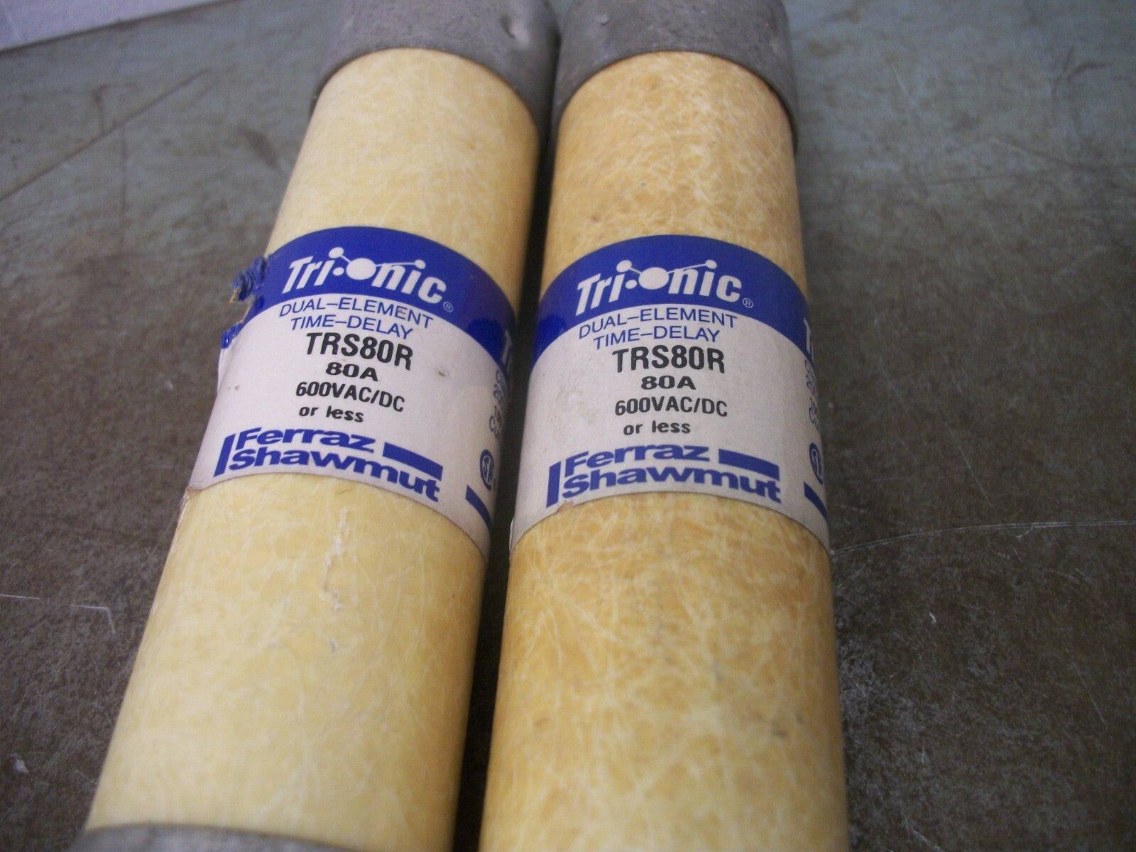 FERRAZ-SHAWMUT LOT OF 2 TRI-ONIC FUSES TRS80R 80AMP 600VOLT