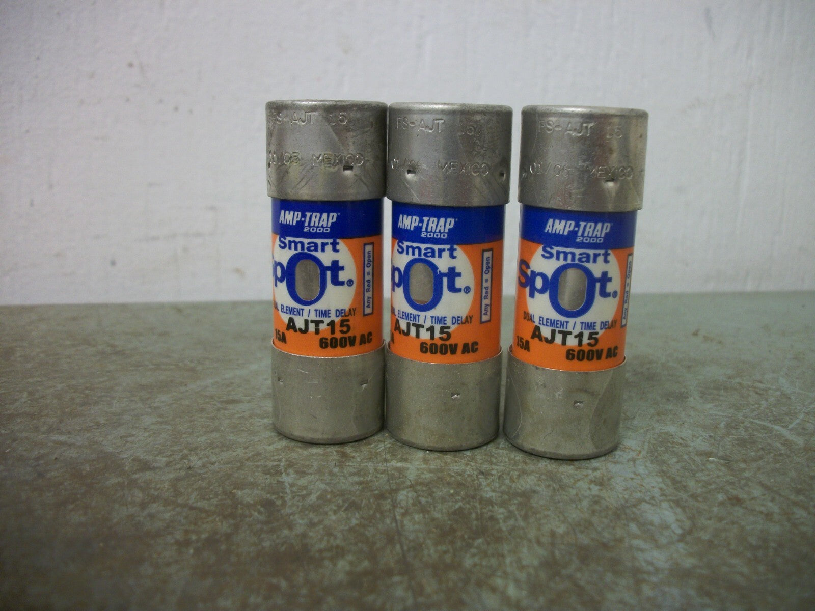 FERRAZ-SHAWMUT LOT OF 3 AMP-TRAP 2000 SMART SPOT FUSES AJT15 15AMP 600VOLT