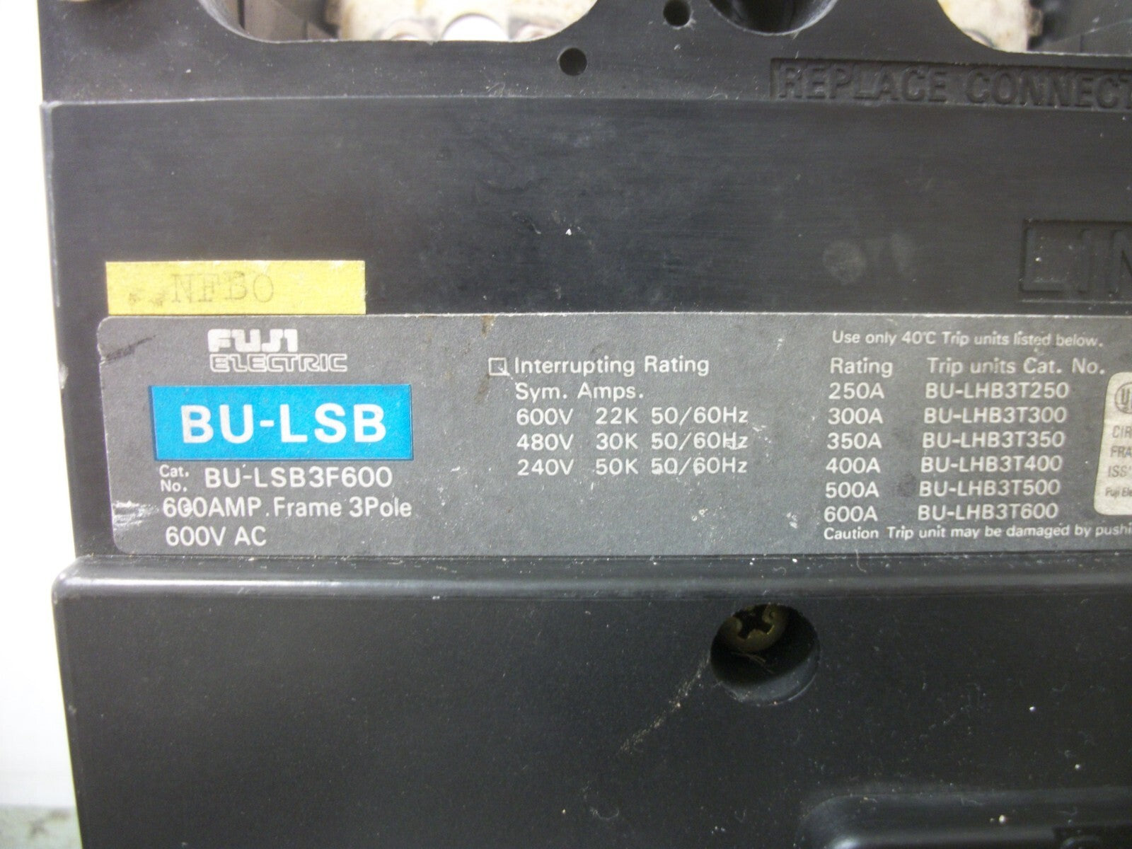 FUJI BU-LSB CIRCUIT BREAKER BU-LSB3F600 600AMP 600VOLT 3POLE W/600A TRIP CHIPPED