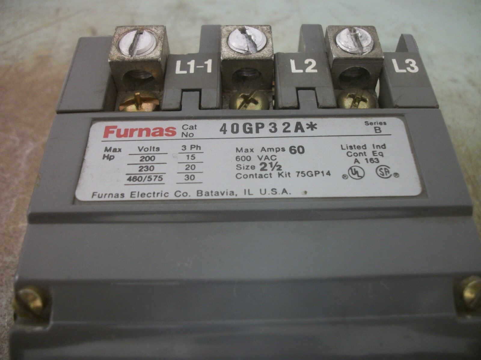 FURNAS SIZE 2-1/2 CONTACTOR 40GP32A* 60AMP 110-120/220-240VCOIL 3PH 600V 30HP