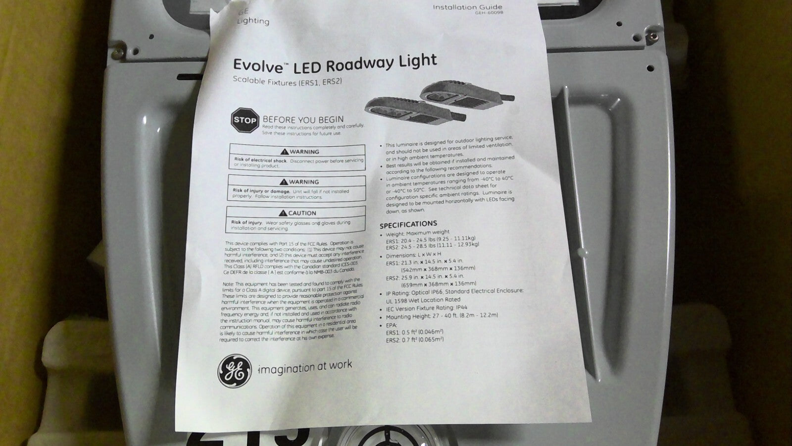 GE 93067469 EVOLVE LED ROADWAY LIGHT ERS2023E1X40DGRAYAEGLR168 120/277V 219W NIB