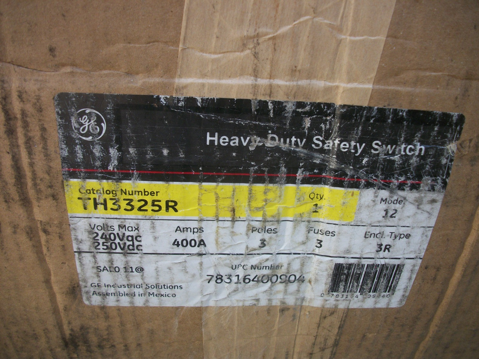 GE DISCONNECT TYPE 3R TH3325R 400AMP 240VOLT 3POLE FUSIBLE NIB