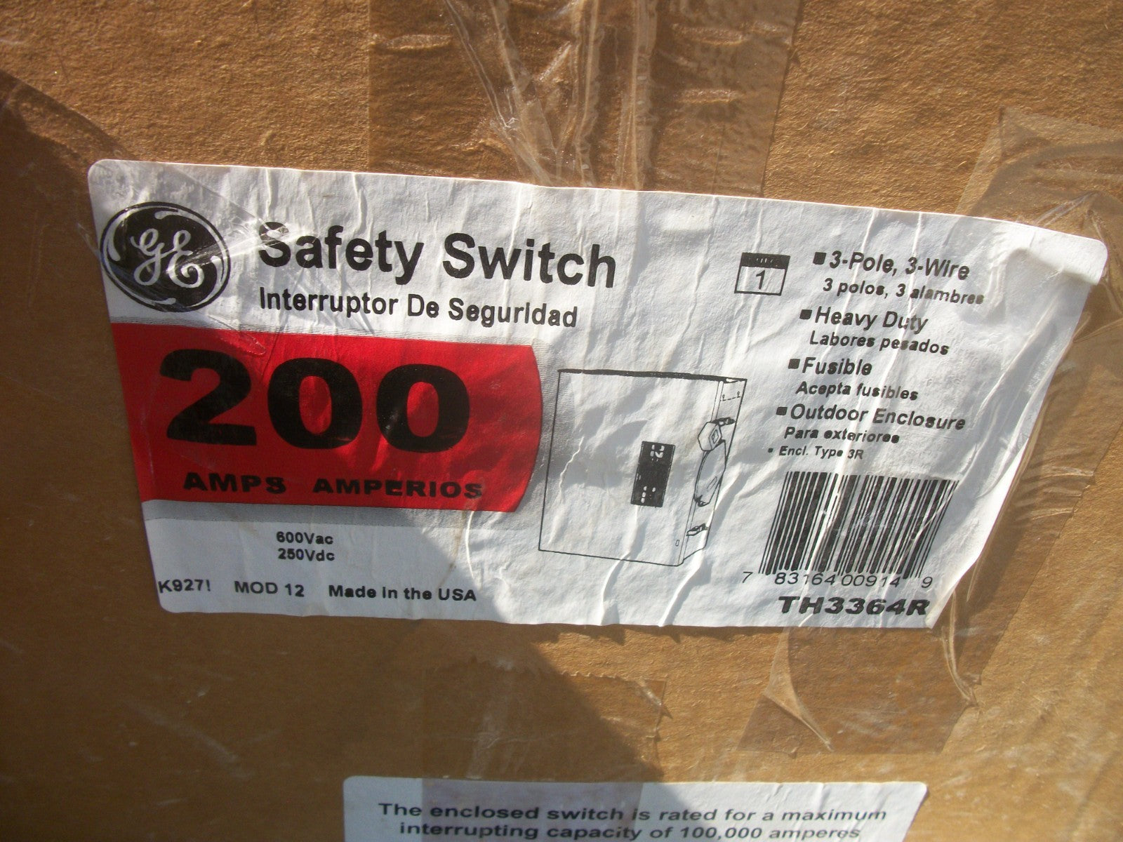 GE DISCONNECT TYPE 3R TH3364R 200AMP 600VOLT 3POLE FUSIBLE NIB