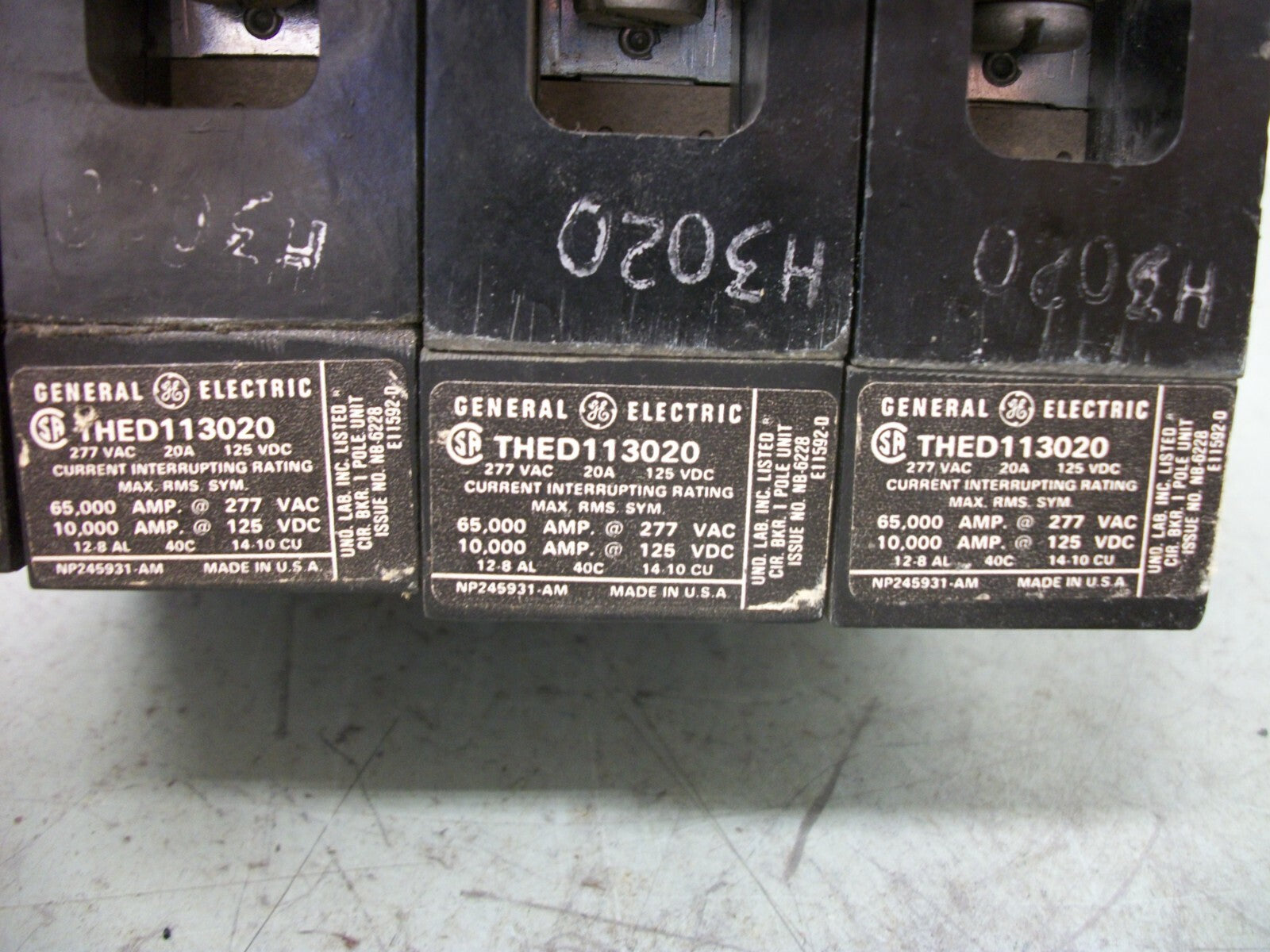 GE LOT OF 4 THED CIRCUIT BREAKERS THED113020 20AMP 277VOLT 1POLE