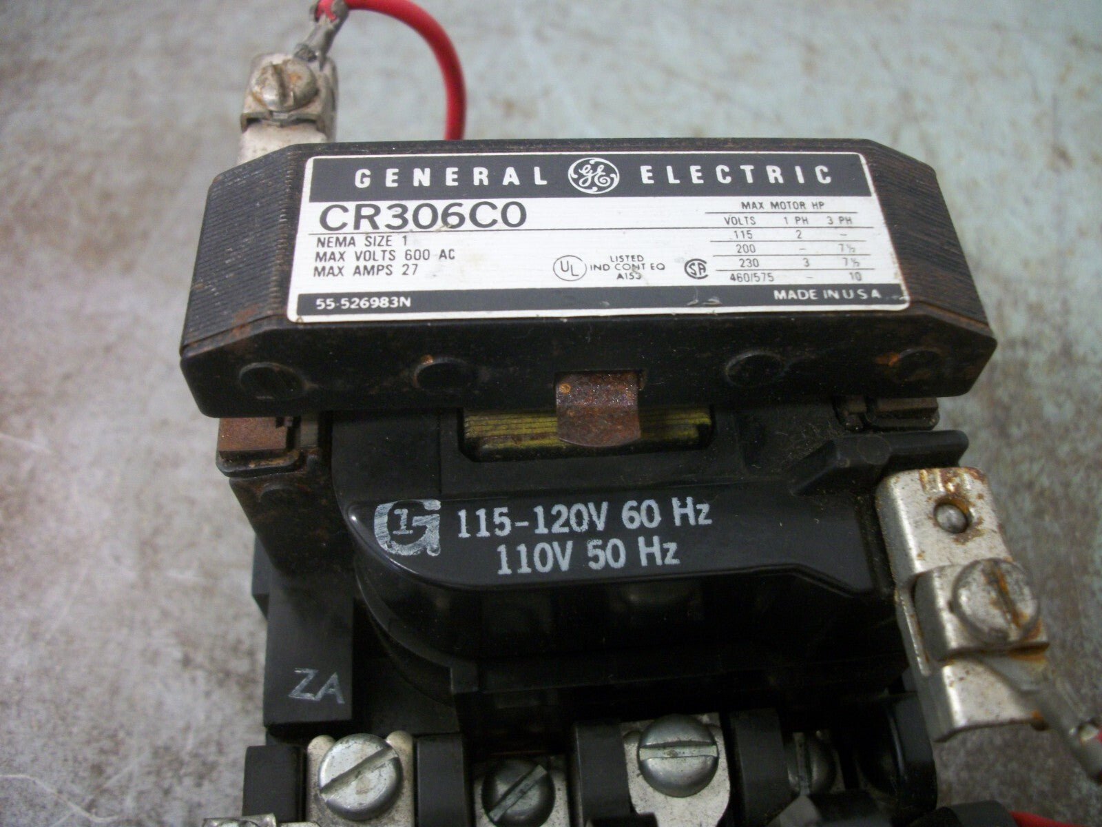GE SIZE 1 MOTOR STARTER CR306C0 27AMP 120VCOIL 3PH 600V 10HP