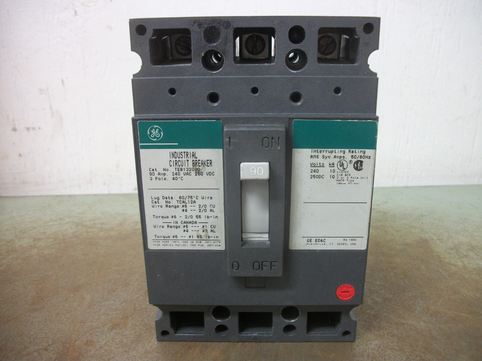 GE TEB CIRCUIT BREAKER TEB132090 90AMP 240VOLT 3POLE GREEN