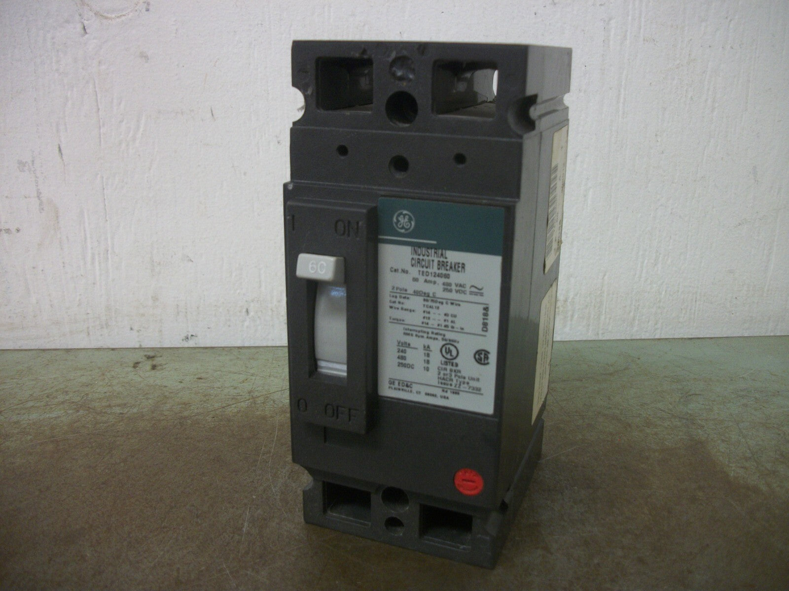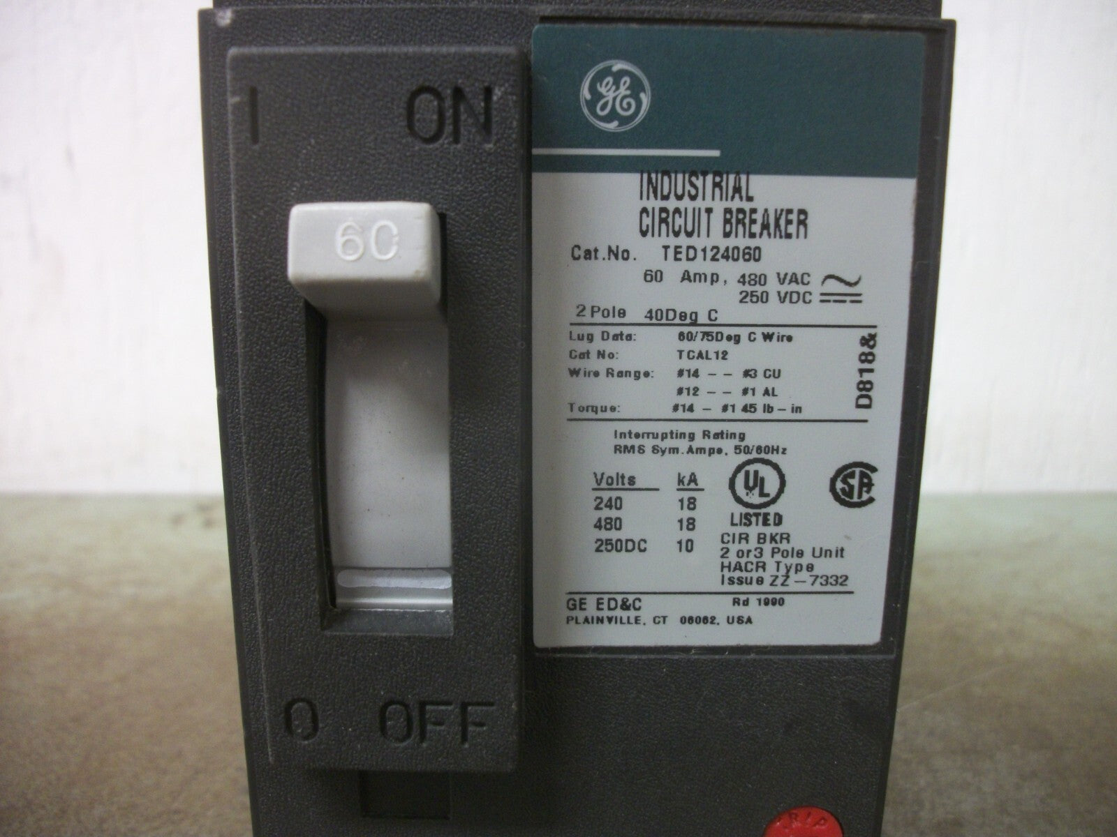 GE TED CIRCUIT BREAKER TED124060 60AMP 480VOLT 2POLE GREEN