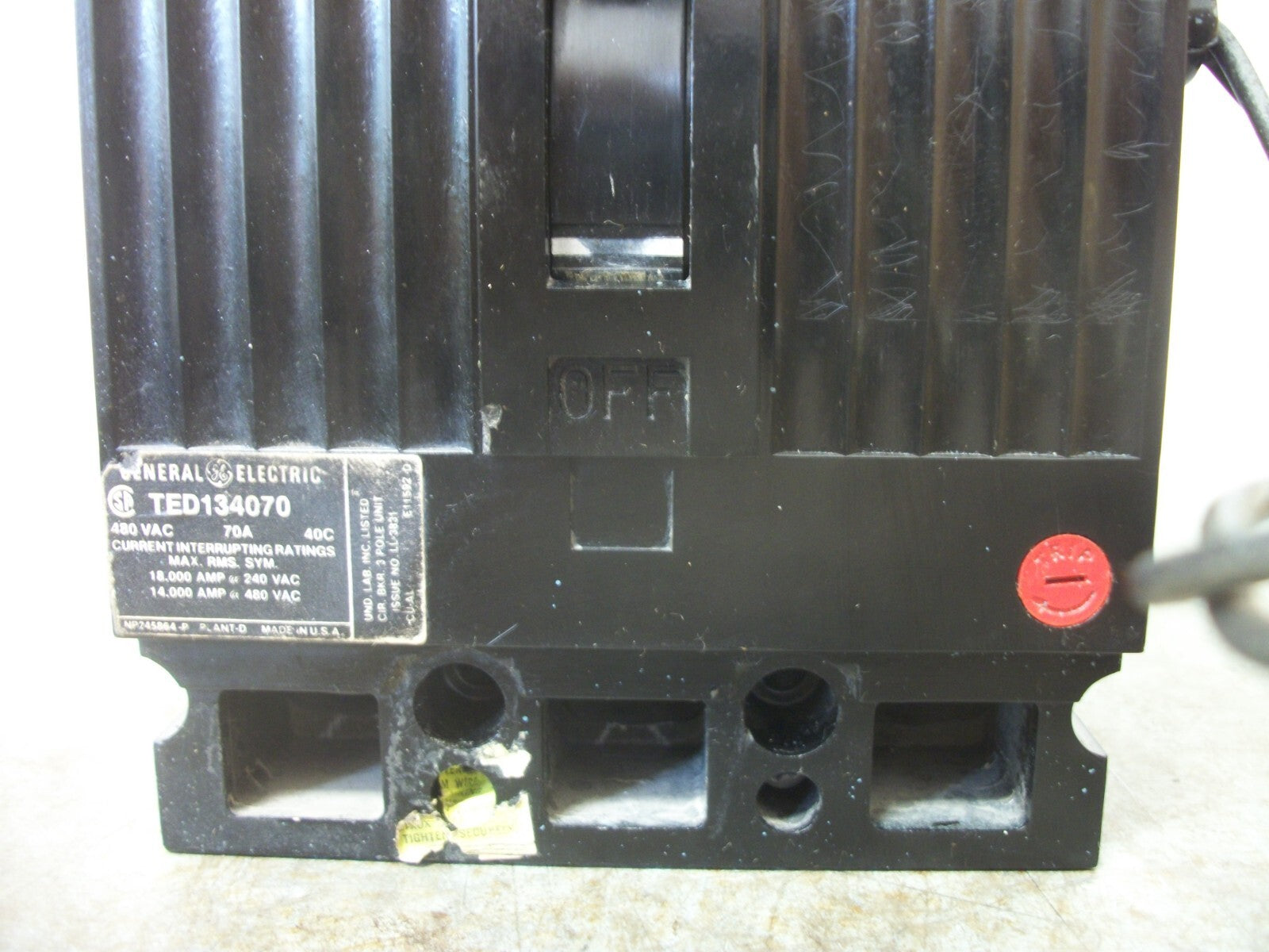 GE TED CIRCUIT BREAKER TED134070 70AMP 480VOLT 3POLE BLACK W/SHUNT