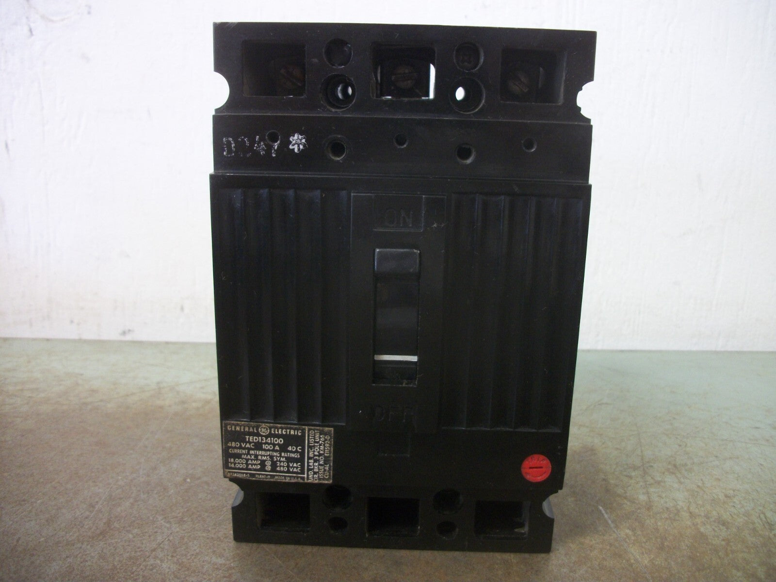 GE TED CIRCUIT BREAKER TED134100 100AMP 480VOLT 3POLE BLACK